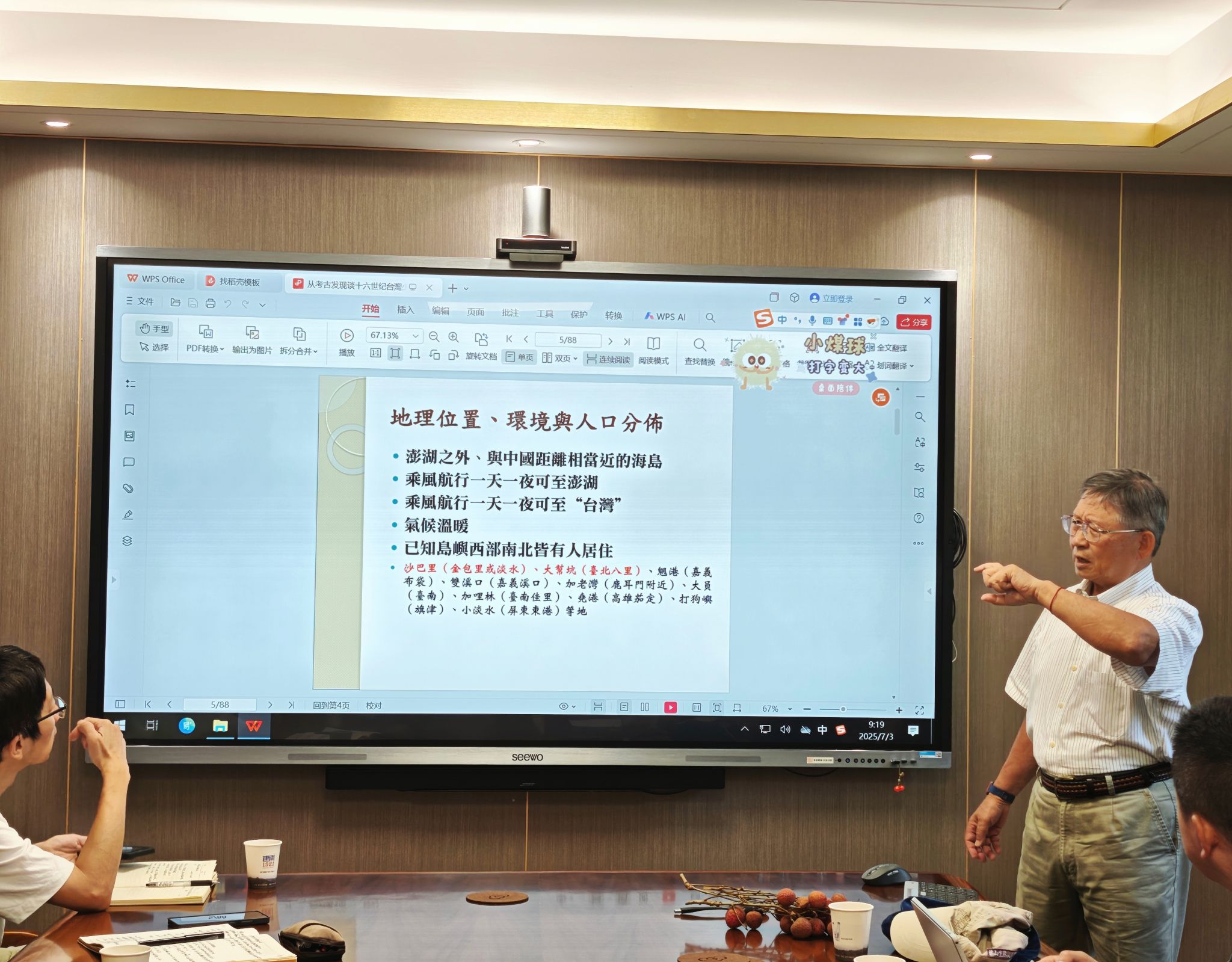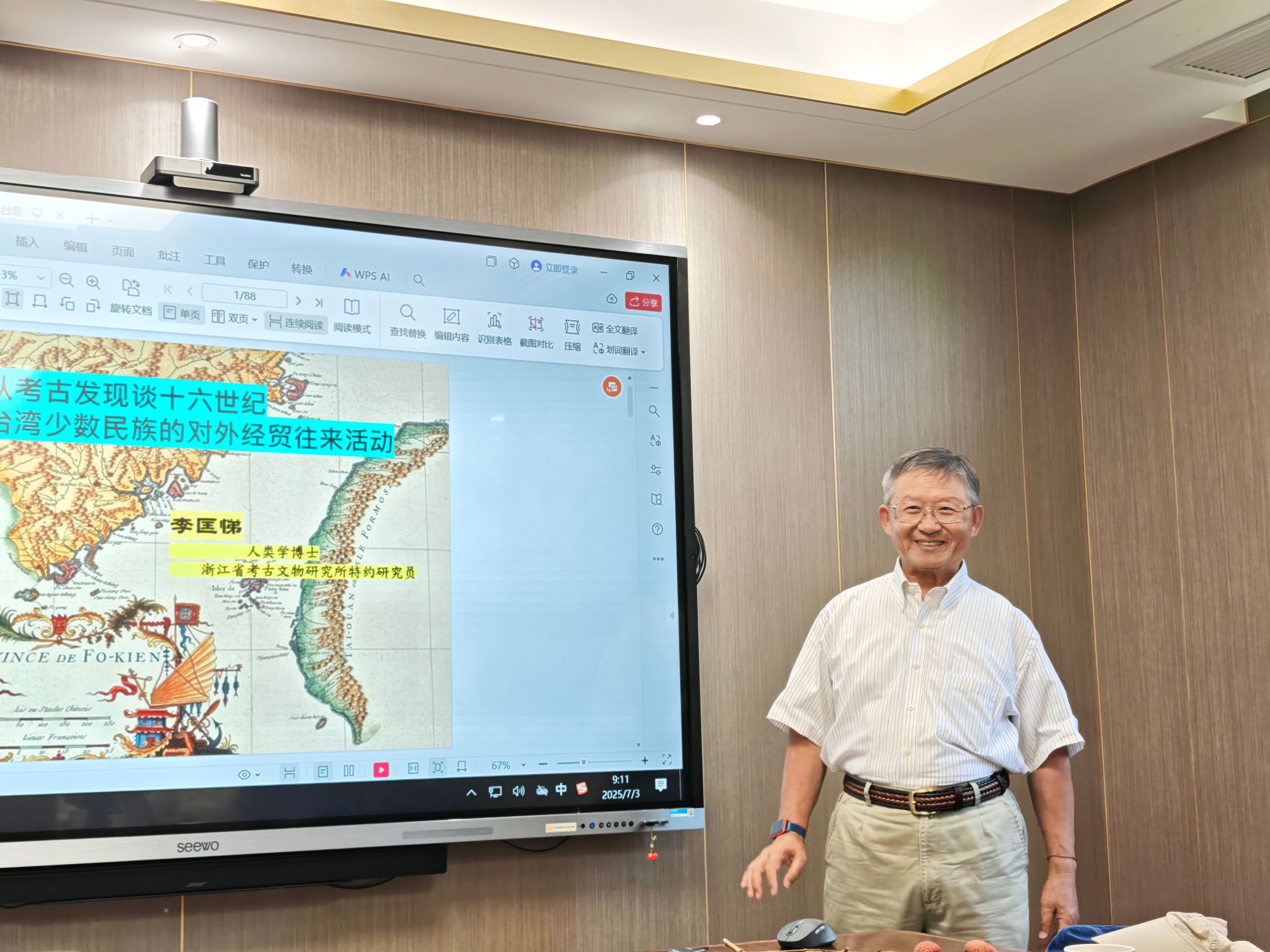2025年7月3日,浙江省文物考古研究所特约研究员李匡悌应邀在厦门大学台湾研究院举办“从考古发现谈十六世纪后台湾少数民族的对外经贸往来活动”讲座,讲座由历史所陈忠纯教授主持,港澳台研究中心主任张宝蓉教授,历史所黄俊凌副教授、陈思副教授、王玉国助理教授出席,以及我院历史所同学参加。