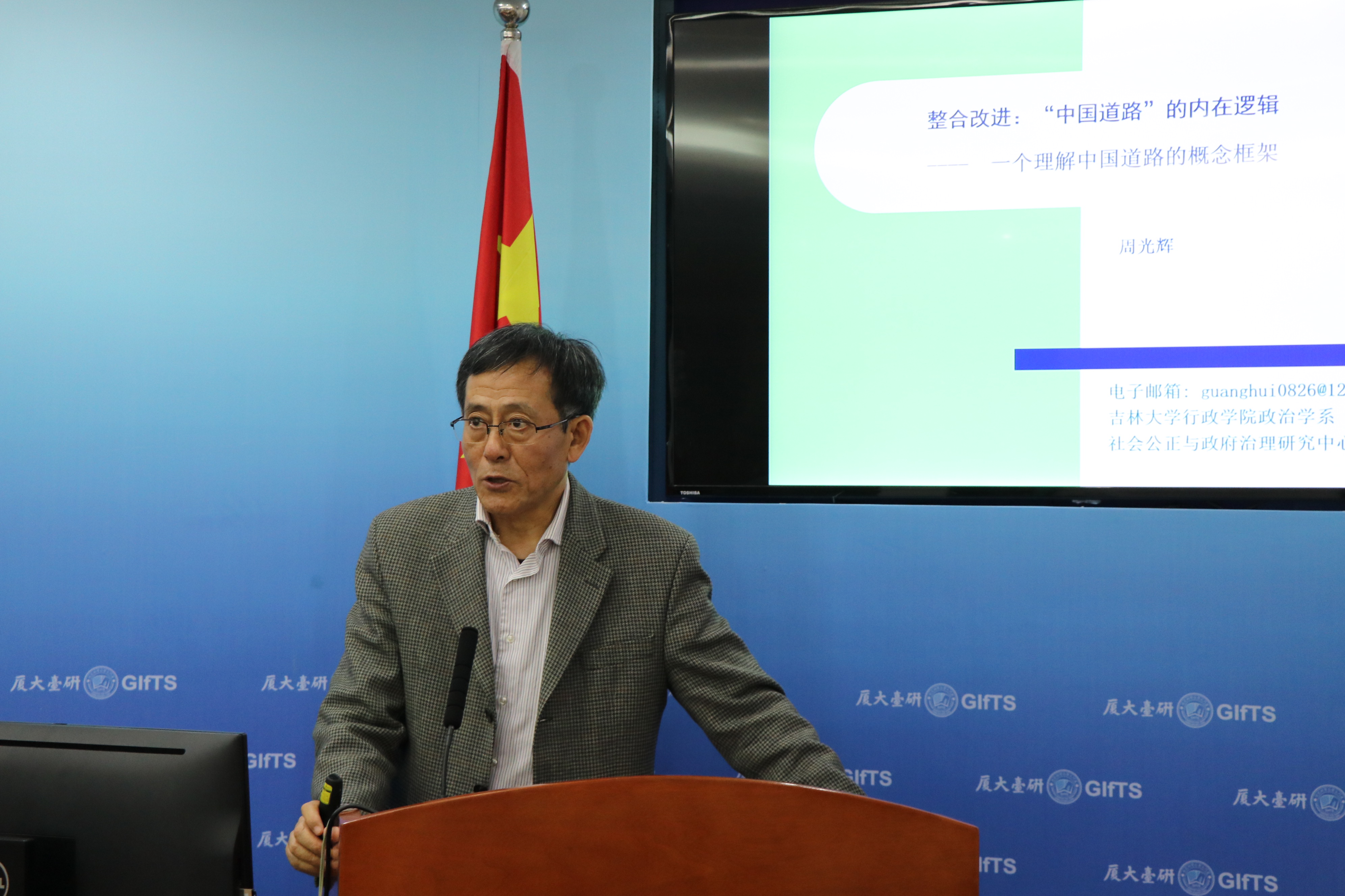 12月11日晚19:10,吉林大学周光辉教授在院507学术报告厅为我院师生做“整合改进:‘中国道路’的内在逻辑—一个理解中国道路的概念框架”主题座谈。本次讲座由我院政治所所长陈先才教授主持,政治所王贞威助理教授、文献信息中心叶宏明主任、马克思主义学院李建助理教授及我院硕博生到场聆听。