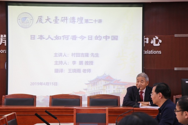 2019年4月15日下午3点,“厦大台研讲坛”第二十讲在学院507会议室拉开帷幕。本次讲座有幸邀请到前日本内阁大臣、众议院议员、公安委员长村田吉隆先生担任主讲人。院长李鹏教授主持此次讲座,张文生副院长和张羽副院长以及政治所所长陈先才教授和王贞威助理教授出席,同时邀请到外文学院王晓雨老师担任现场翻译。我院各所硕博士生积极参与。