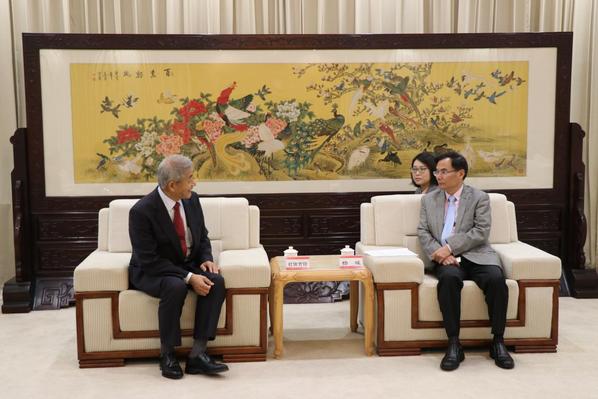 次日早上,厦门大学副校长杨斌礼节性会见了村田吉隆先生。我院副院长张文生、国际处副处长余宏波等陪同出席。杨斌副校长首先对村田先生表示了热烈欢迎,并高度赞扬了村田先生对中日关系发展做出的贡献。随后他向村田先生介绍了我校的办学历史、发展现状及国际交流情况。村田先生感谢我校的热情邀请,并介绍了日本经济的发展。