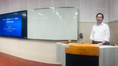 2018年11月9日,“台研法治讲堂”第6季第3期在囊萤楼举行。中国人民大学两岸关系研究中心主任王英津教授的讲座题目为《台湾地区“公投政治”对一中框架的侵蚀与挑战》,讲座持续三个学时。本期讲座由台湾研究院院长李鹏教授主持,台湾研究院副院长彭莉教授、法律所副所长刘文戈及我校师生数十人聆听了王教授的讲座。