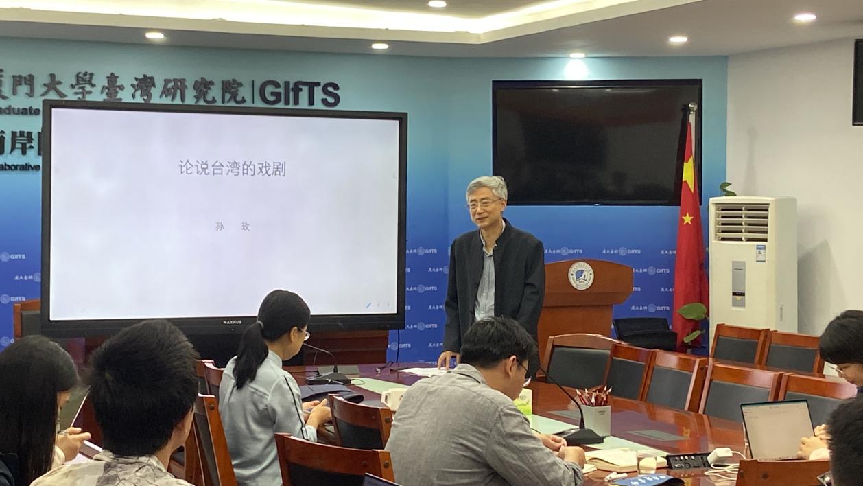 4月19日晚,台湾“中央大学”中文系教授孙玫应邀为我院师生作题为“论说台湾的戏剧”的学术讲座。本场讲座由厦门大学台湾研究院副院长张羽教授主持,历史所所长陈忠纯教授、文学所副所长吴舒洁副教授,以及相关专业的硕博士生到场参加。