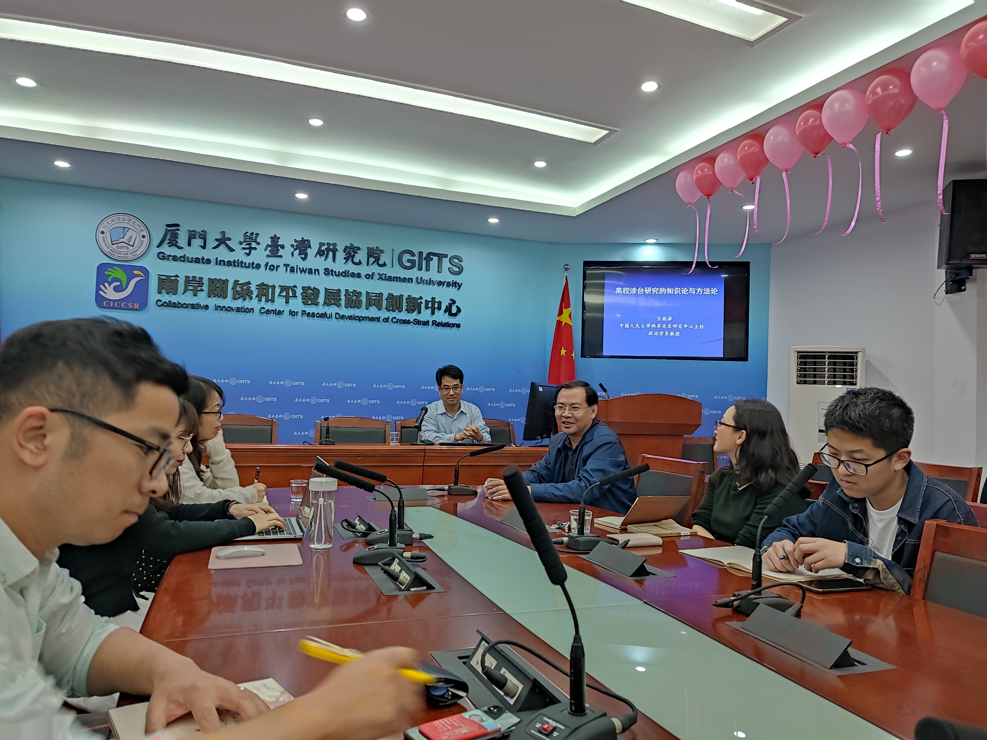 近日,中国人民大学两岸关系研究中心主任、政治学系教授王英津应邀来访,在我台湾研究院五楼学术报告厅为全体师生做了题为“高校涉台研究的知识论与方法论”的学术讲座。本次讲座由院长李鹏教授主持,法律所所长季烨副教授、经济所黄燕萍副教授以及各所硕博研究生参加。