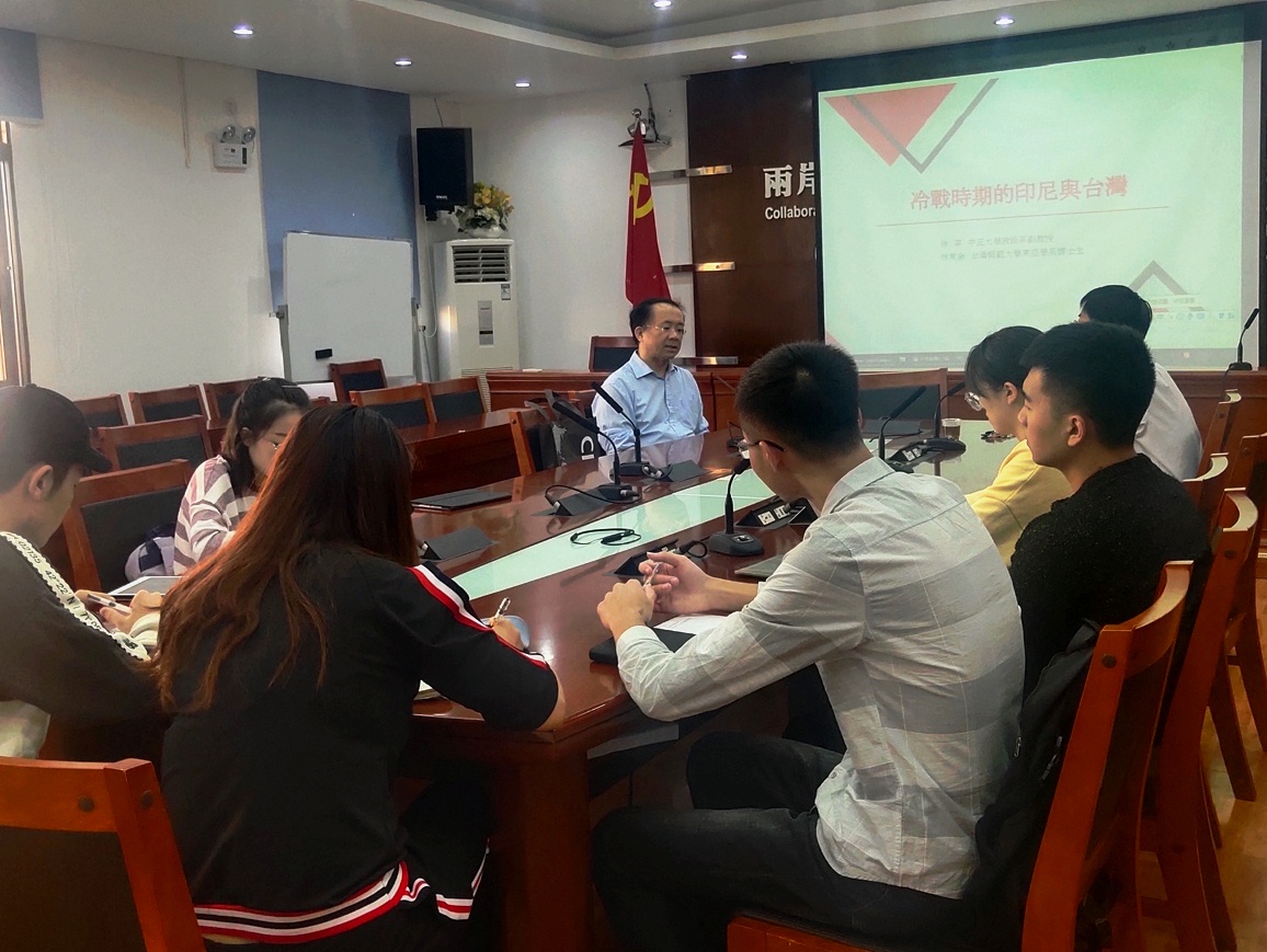 11月10日上午,由台湾中正大学政治系林平副教授主讲的“冷战时期的印尼与台湾”学术讲座在台湾研究院会议室举行。本次讲座由厦门大学台湾研究院主办,台湾研究院历史所承办,副所长黄俊凌副教授主持。来自台湾研究院、国际关系学院的同学们到场聆听本次讲座。