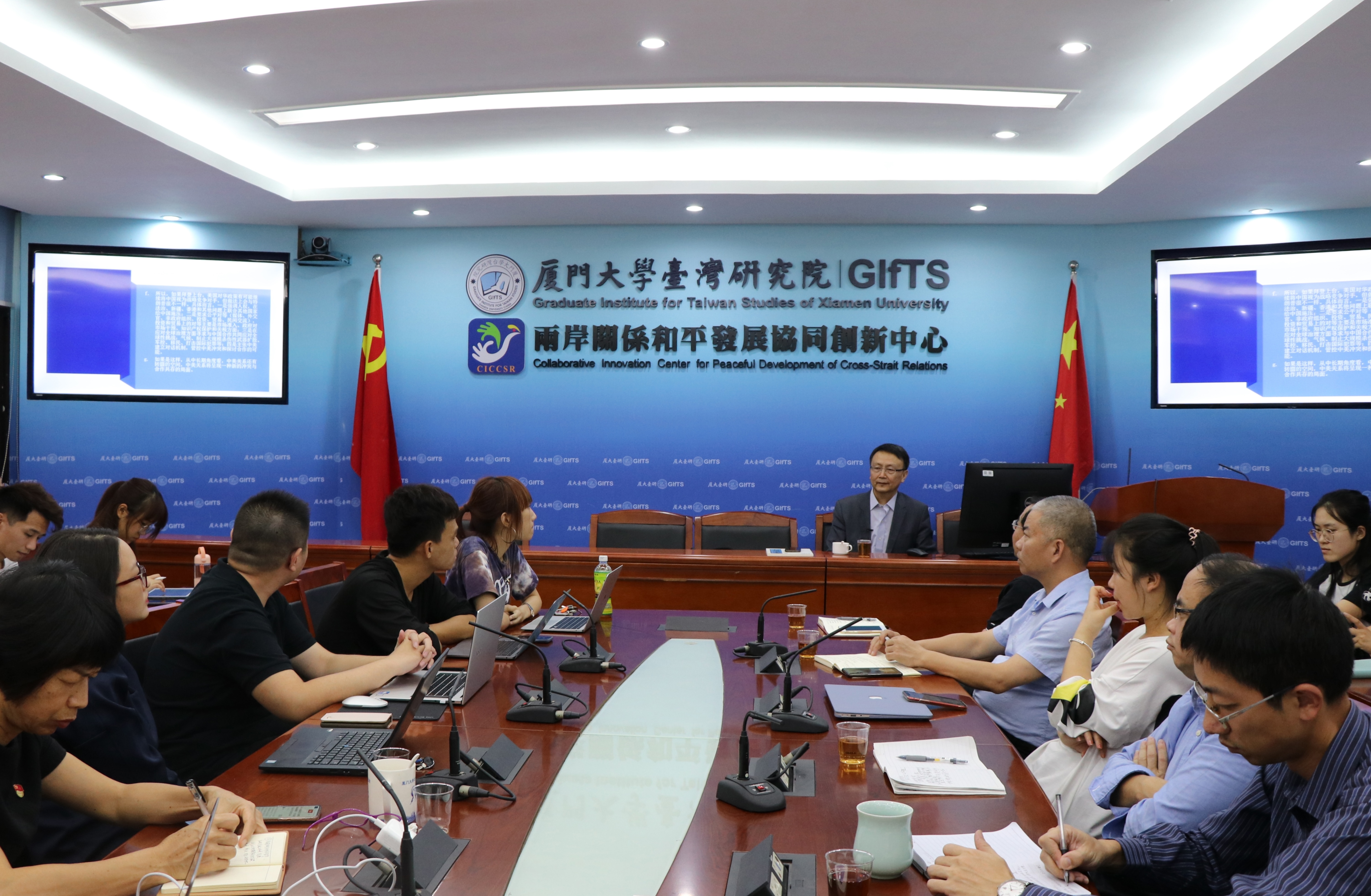 李鹏院长代表本院师生对贾庆国教授致以了诚挚的感谢,赞扬了其在讲座过程中问题意识清晰、发人深省,展现出了当代中国学者的风范,并相信贾教授的精彩讲述会对同学们在学术研究上带来诸多启发。正逢厦门大学百年校庆和台湾研究院40周年院庆,贾庆国教授的讲座正式开启了为庆祝厦门大学百年校庆和台湾研究院40周年院庆,由厦大台研讲坛举办系列“双庆高端学术讲座”的序幕。