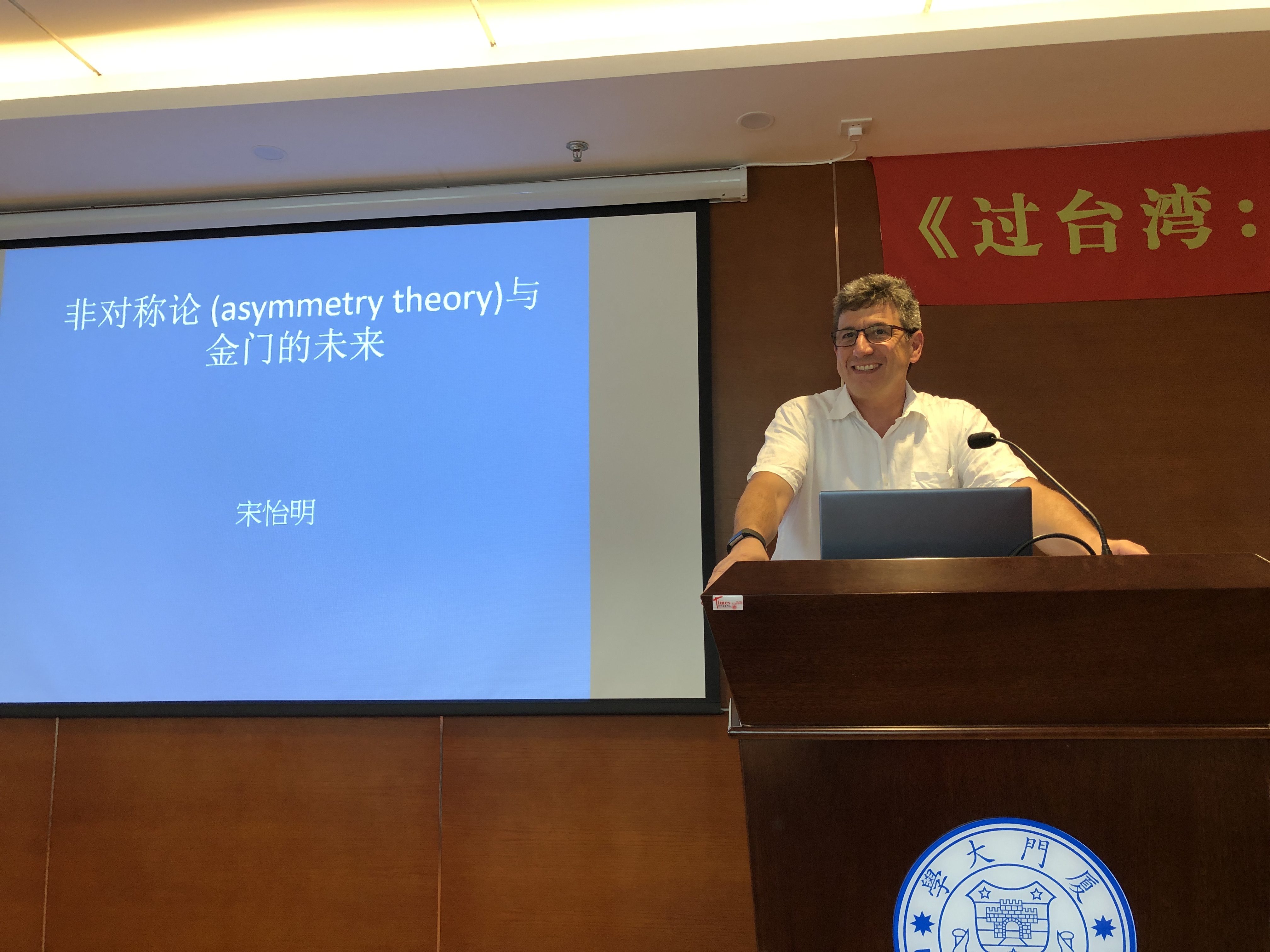 6月21日下午,哈佛大学费正清研究中心主任宋怡明教授莅临“厦大台研讲坛”,就“非对称论与金门的未来”为我院师生作了一场精彩的报告。宋怡明(Michael A. Szonyi)是哈佛大学东亚语言文明系中国历史学教授,费正清研究中心主任,明清及中国近代社会史学家。宋怡明擅于利用历史人类学和田野调查方法研究中国东南地区的社会史,致力研究明朝军户的历史。他2008年出版《Cold War Island: Quemoy on the Front Line》(《前线岛屿》)。此书以冷战期间的金门为研究案例,具体讨论冷战时期的金门人民在经济、社会、宗教等生活面向如何受到军事化、现代性、与地缘政治化(geo-politicization)等具全球性的因素影响。他以历史人类学的研究方法为基础,除了官方档案外,还大量使用田野调查、口访纪录和地方档案等民间文献,得以突破旧有框架,重建出金门的新历史。此次讲座宋教授就金门的历史和未来谈了他最新研究成果。