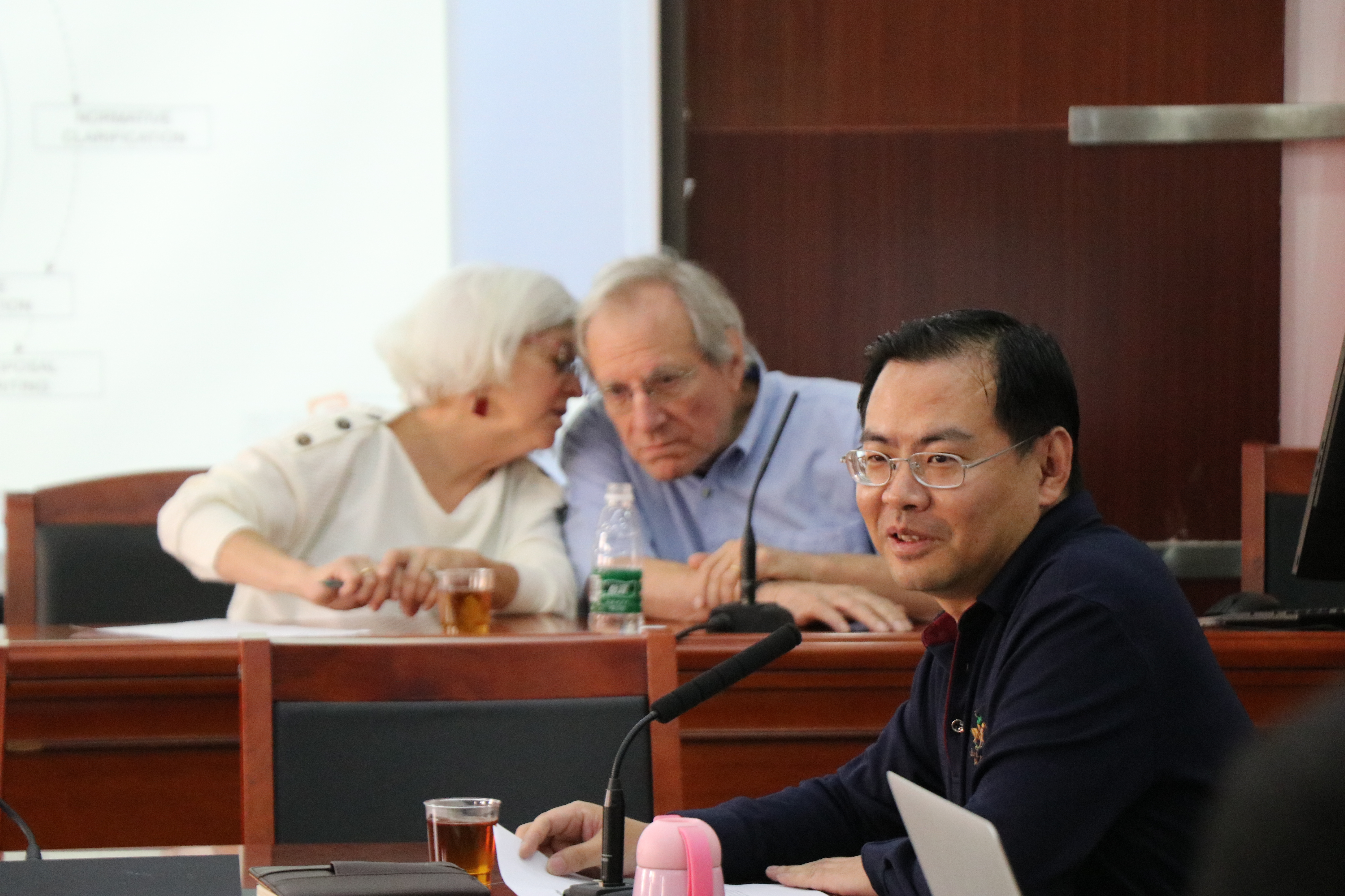 李鹏院长首先为大家介绍施密特教授和卡尔教授的基本情况。菲利普·施密特(Philippe Schmitter)教授是美国芝加哥大学教授、斯坦福大学荣休教授、欧洲大学学院荣休教授,于2009年获得政治学国际大奖Johan Skytte Prize;泰利·莱恩·卡尔(Terry Lynn Karl)是斯坦福大学政治学教授,出版《资源丰富的困境富有产油国》、《竞争的局限性》等多部著作,被时代周刊认为“十大影响世界的思想之一”。