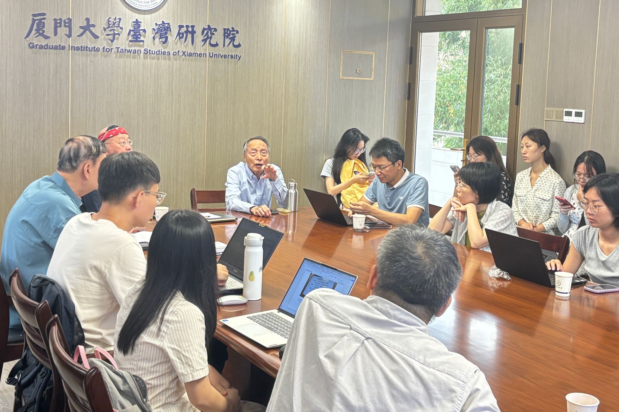2025年6月18日上午,台湾著名诗人詹澈、台湾差事剧团艺术总监钟乔应邀莅临我院发表专题学术演讲。本次讲座由我院朱双一教授主持,台湾研究院刘奎教授、吴舒洁副教授、博士后吴文,以及历史与文化遗产学院邱士杰副教授等出席,我院文学所多位硕博士生参与。