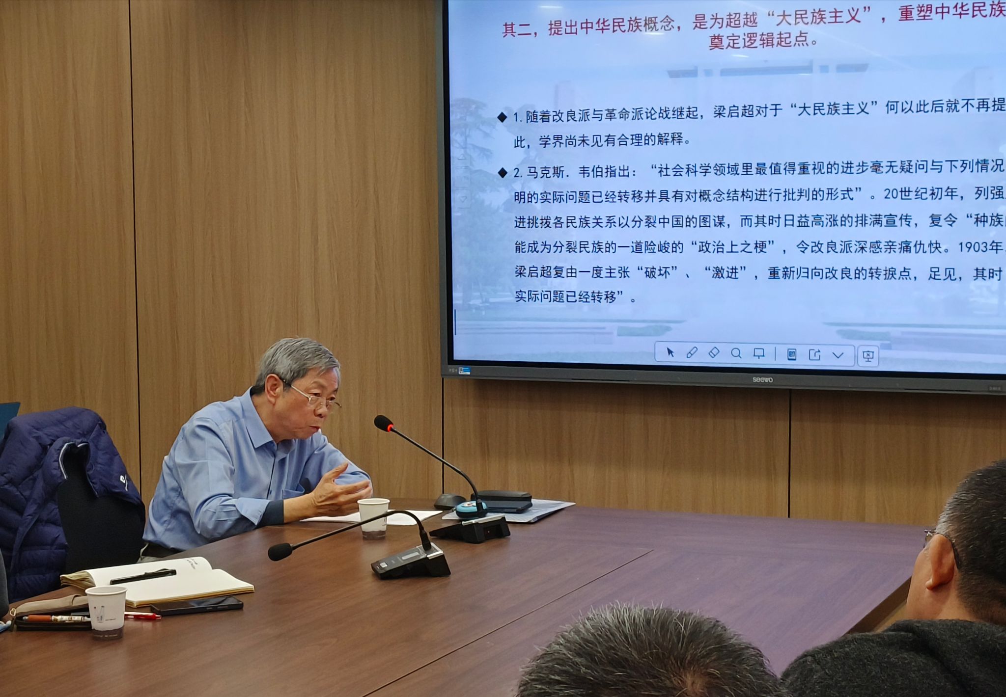 郑师渠教授指出,“中华民族”概念由梁启超最早提出,考察其提出中华民族概念的机缘及其演进,既是理解与把握近代中华民族共同体意识由自在转为自觉的重要议题之一,也是深化梁启超思想研究本身所必需。随后,郑教授从两部分对此进行深入讲解。