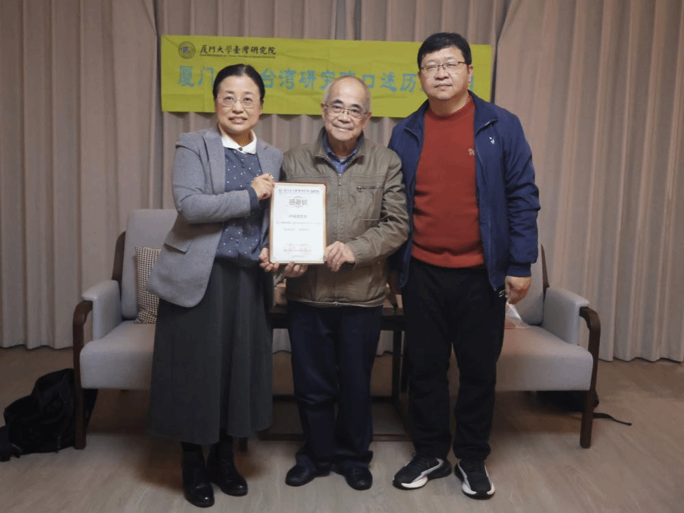 2026年3月1日,全国台联原副会长、北京市台联原会长、北京大学党委统战部原部长卢咸池教授应邀接受厦门大学台湾研究院口述访谈。张羽教授负责本次访谈的题目设计和现场访谈工作。张羽教授向卢咸池教授致欢迎辞并简要介绍“厦门大学台湾研究院口述历史项目”后,为卢咸池教授颁发了感谢状。台盟漳州市委会副主委、漳州许地山研究会会长许钢先生到场参与现场讨论。