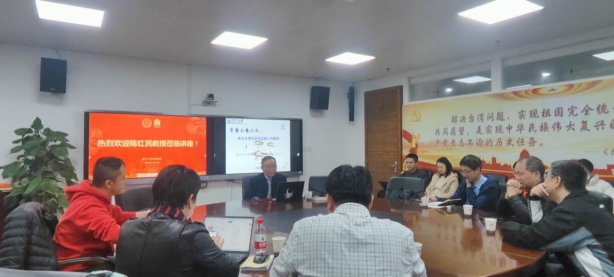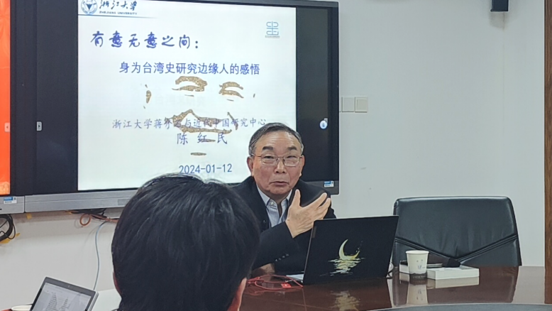 2024年1月12日晚,浙江大学蒋介石与近代中国研究中心陈红民教授莅临我院举办学术讲座,题为“有意无意之间:身为台湾史研究边缘人的感悟”。讲座由我院历史所陈忠纯所长主持,黄俊凌副所长、陈小冲教授、陈思副教授、王玉国助理教授、新闻传播学院吴琳琳教授等教师及来自历史所、政治所和文学所的十余名硕博生参加。