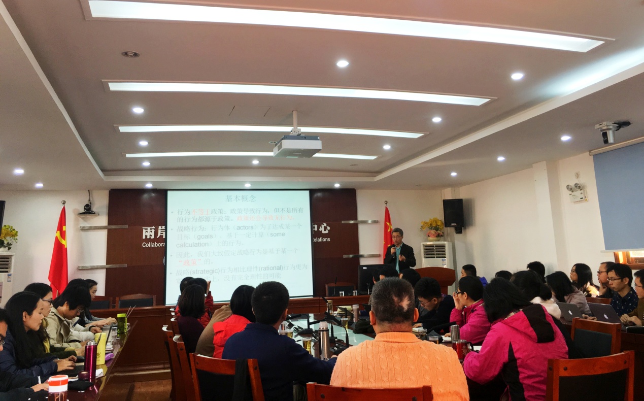 2018年1月11日下午,厦门大学台湾研究院主打品牌学术讲座——厦大台研讲坛在学院五楼学术报告厅盛大开讲。本次主讲嘉宾为复旦大学国际关系与公共事务学院陈树渠讲席教授、长江学者唐世平,主题是“理解战略行为”。本场讲座由我院院长、两岸关系和平发展协创中心秘书长李鹏教授主持,台湾研究院、南洋研究院、公共事务学院的部分师生与会。