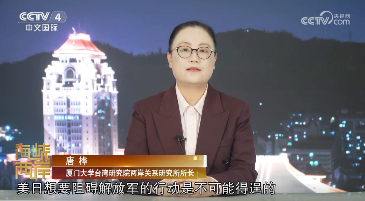 节目主持人:在美国的支持与帮助之下,这些年日本介入台海问题的动作和态度越来越积极了。唐所长您如何看待日本这么做背后的目的所在?同时美国如此放任纵容日本发展武力,真的一点都不担心吗?而一旦台海爆发军事冲突的话,您认为美日双方真的有可能并肩作战吗?
