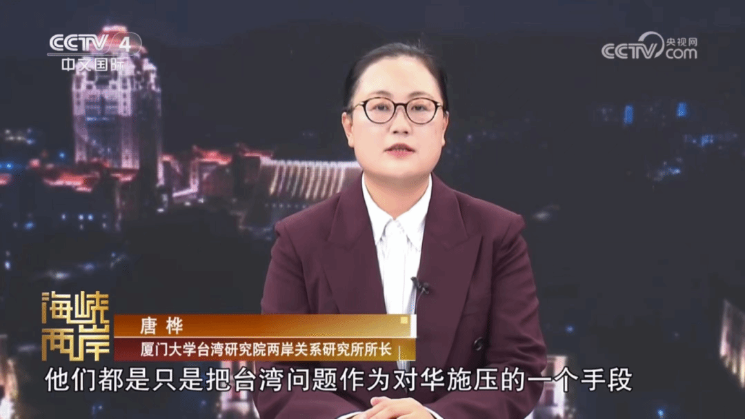 据台湾媒体报道,美国近期频提扩大台湾所谓“国际参与”、“挺台”参与世卫大会等议题,引发了岛内舆论争议。美方还紧抓台积电,试图在人工智能领域进一步对华施压。美国近期一系列涉台动作究竟意味着什么?民进党当局若执迷不悟,将面临怎样的后果?就这样的话题,厦门大学台湾研究院两岸关系研究所所长唐桦受邀参与央视《海峡两岸》节目录制,展开解析。