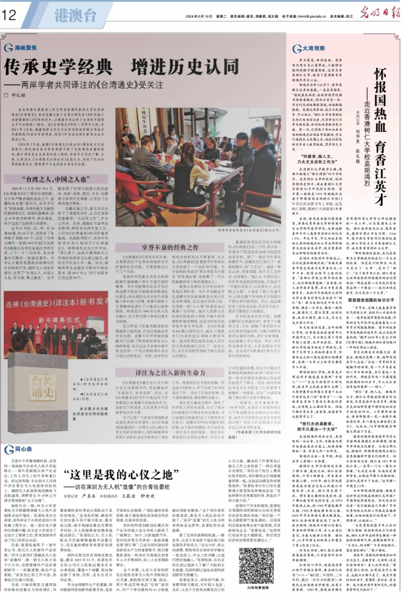 2024年2月底,连横《台湾通史》(译注本)简体版正式出版发行,标志着这部史学经典著作有了比较通俗易懂的版本,便于两岸民众尤其是年轻人阅读,有助于引导其了解、正视、认同历史。《台湾通史》(译注本)出版之后,受到了社会各界的高度关注,繁体版不久也将在台湾岛内出版。