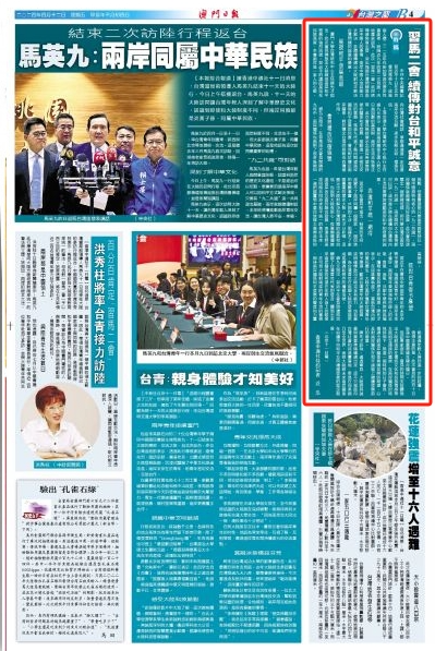 中共中央总书记习近平四月十日在北京会见马英九,这是两人继2015年在新加坡首次历史性会面后,时隔近九年的第二次见面。专家学者接受《澳门日报》采访认为,此次“习马二会”从民族情感角度出发,突出强调台湾问题是两岸中国人的事情,两岸中国人也有能力去解决,并继续传递出大陆对和平解决台湾问题的诚意和善意。