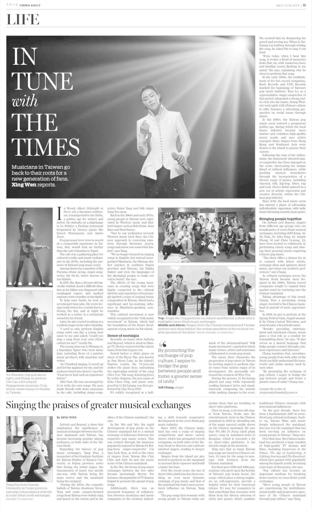 Infinite and Beyond, a show that emphasizes the significance of musical exchanges between the Chinese mainland and Taiwan, has become increasing popular among audiences on both sides of the Taiwan Strait.