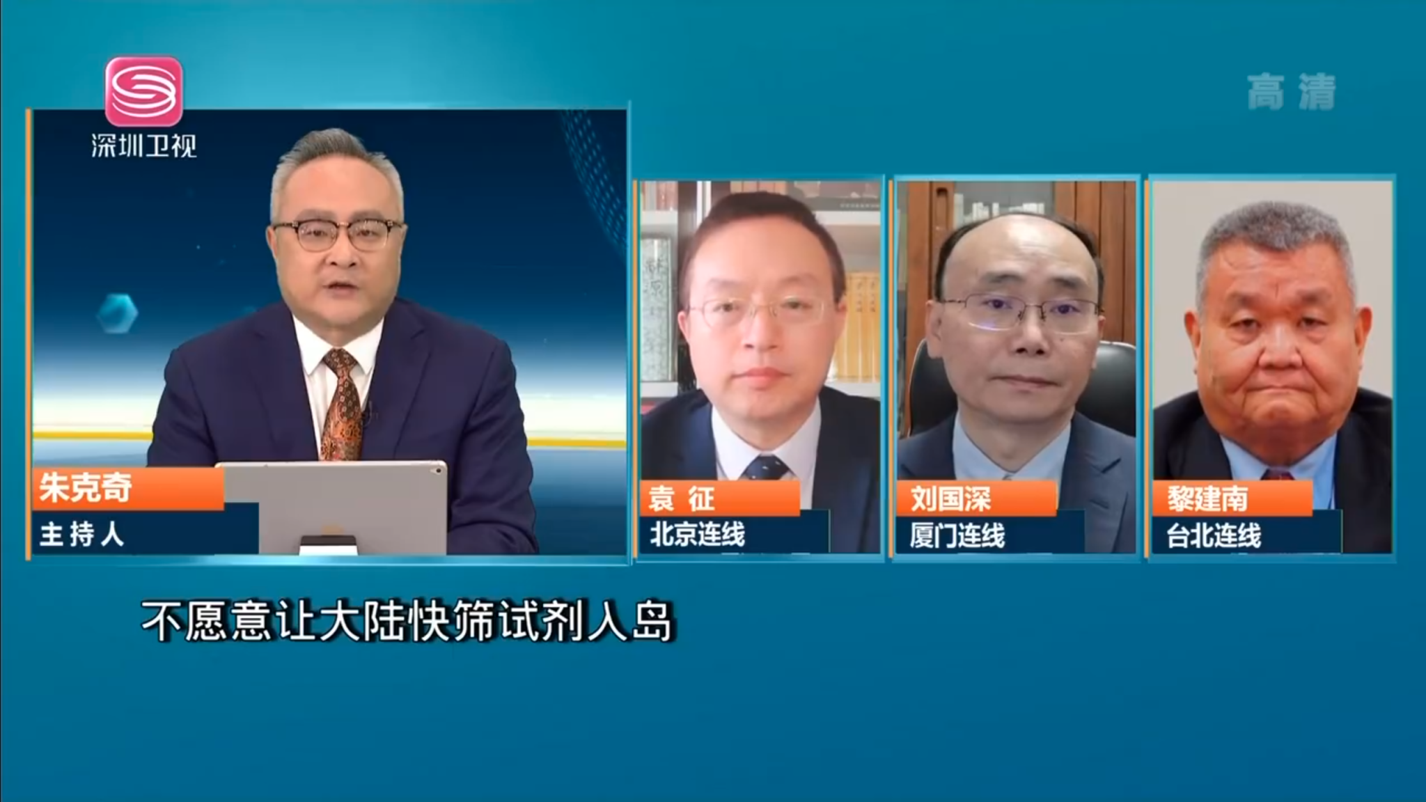 在节目中,针对民进党当局不愿让大陆快筛试剂入岛的问题。刘国深教授指出,民进党当局的目的首先还是企图跟大陆争所谓的“主导权”的问题。他们的逻辑是,台湾的事情用不着你大陆方面来管。第二就是继续虚构所谓“台湾更优先”的假象,民进党当局担心如果中国大陆的快筛试剂大量进到岛内,台湾民众会觉得,中国大陆为什么做得这么好,那么大陆是不是比台湾更加进步。它(民进党当局)怕造成这样的一种印象。第三个目的,避免台湾“受制于”大陆,避免台湾对中国大陆形成更大的依赖。