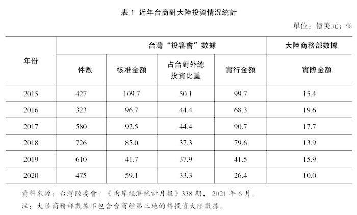 ③台湾陆委会:《两岸经济统计月报》338期,2021年6月。