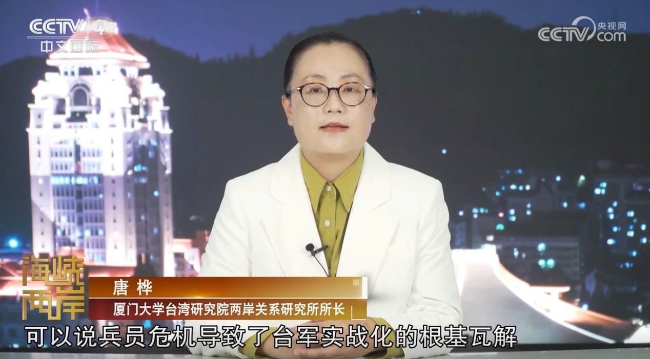 节目主持人:为了“以武拒统”,赖清德当局更是让台军的训练向实战化转变。但实际情况是台军兵员不足、战力缺失,而且青年们更不愿意为了“台独”上战场。唐所长,您认为这样的情况如果长此以往下去的话,会产生什么样的问题?同时对于台海局势又会造成什么样的影响?