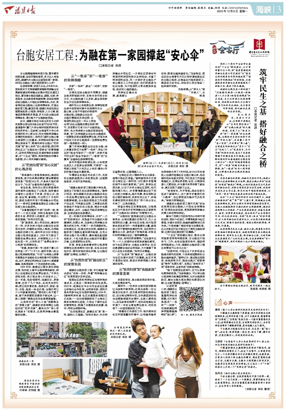 唐桦指出,福建为台胞构筑了多渠道、多元化阶梯式住房保障体系。这样的安居工程,对于台胞来说,能够帮助你“住得起”。“住得起”是我们到一个城市最重要的关心点。在两岸融合社区里,会有情况相似的人、会有各种活动帮你了解熟悉环境,更好地融入这个城市。