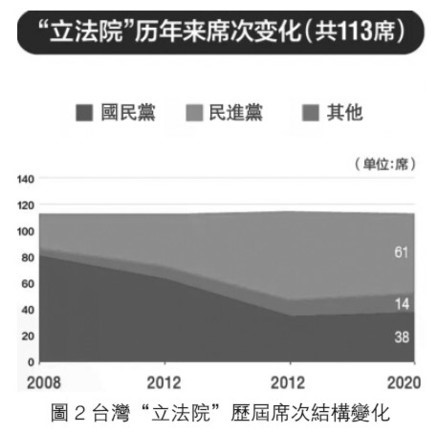 问题是从1996年历次直接选举以来,国民党所推出的台湾地区领导人候选人的得票率和国民党在所谓“立法院”所得的“立委”席次,为何总体上呈现下滑的态势?这种下滑态势代表国民党在台湾政党竞争中总体上在节节败退,政党竞争力总体上在逐渐弱化中。如果认为国民党的败选是由于国民党坚持“九二共识”造成的,那么如何解释国民党过往坚持“九二共识”也有赢得选举的时候?如果认为坚持“九二共识”是一个不利因素,那么又如何解释国民党坚持“九二共识”近20年这一因素未有变化的情形下,而国民党竞争力却呈现的是逐渐下滑的态势?再者,即便今天台湾社会民众普遍不认同两岸同属一个国家,国民党坚持“九二共识”是一个不利因素,那为什么“两蒋”时期的情况却并非如此呢?