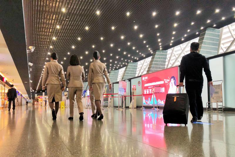 图:受疫情影响,桃园国际机场出入境旅客数急速下滑,三月份截至目前为止,平均每天的入出境人数不到两万人\中央社