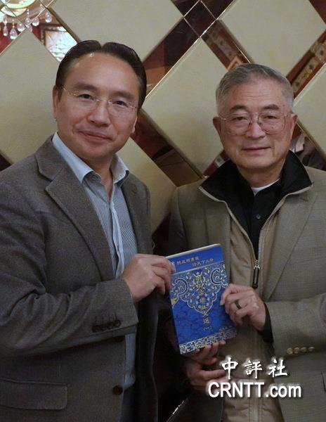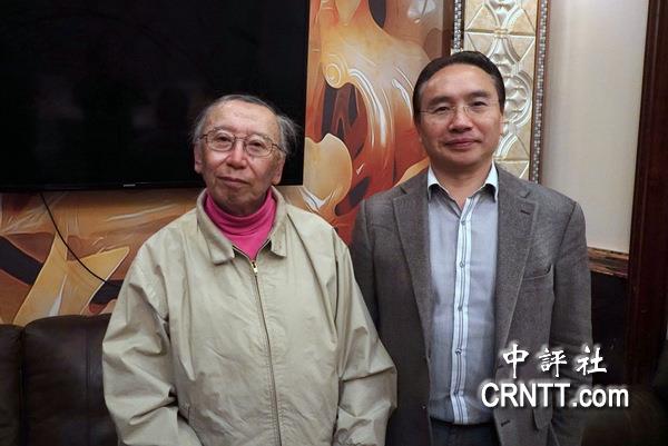 北美洲台湾乡亲联谊会会长梁义大(左)和唐永红教授(中评社记者 宋楷文摄)