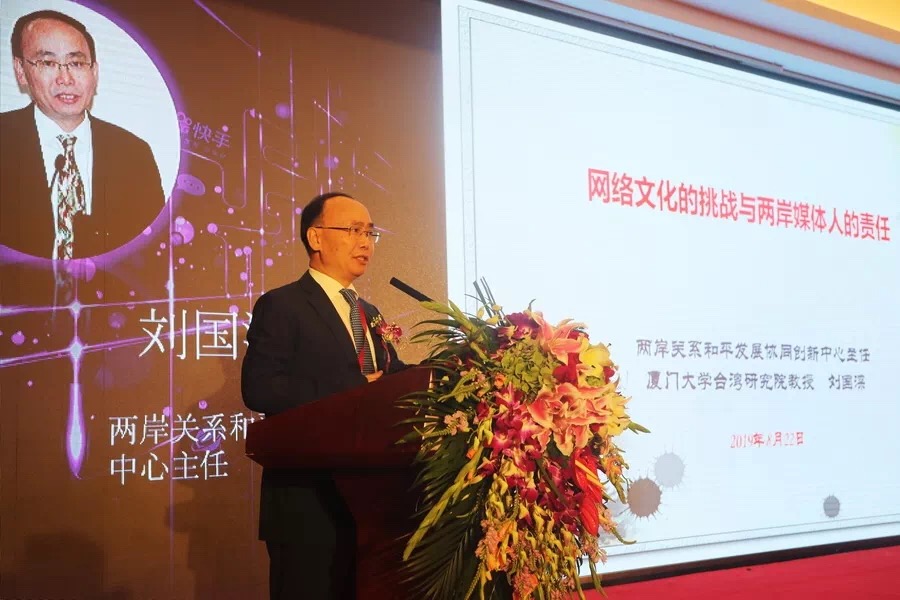 在论坛主旨演讲环节,两岸关系和平发展协同创新中心执行主任刘国深作了题为《网络文化的挑战与两岸媒体人的责任》的发言。他表示,两岸媒体人的网络文化角色非常重要,关系到海峡两岸的前途命运,两岸媒体人不能满足于录音机和复印机的角色,要透过现象看本质,站在国家和民族的高度把握新闻事件,要为两岸关系和平发展提供正能量。