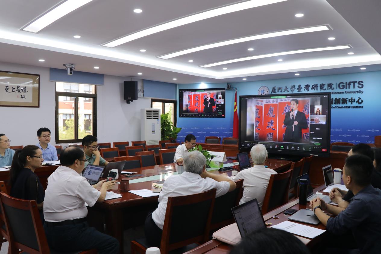 6月10日,2022年新时代两岸关系发展论坛暨第八届文厦论坛学术研讨会在厦门大学台湾研究院和两岸分会场开幕。本次研讨会由厦门大学台湾研究院、中国文化大学社会科学院、两岸关系和平发展协同创新中心和厦门大学港澳台研究中心共同举办。因受疫情影响,论坛采取海峡两岸线上连线形式进行。本届文厦论坛下设两个分论坛,上午举行学者论坛,下午举行学生论坛。来自海峡两岸的专家学者结合自身研究领域就当前台海形势,如中美博弈下的两岸关系,俄乌冲突的台海区域效应,两岸命运共同体建构等议题展开了深入讨论与交流。线上邀请到了七十余位两岸学者参会,线下共有二十余位台湾研究院师生参加。