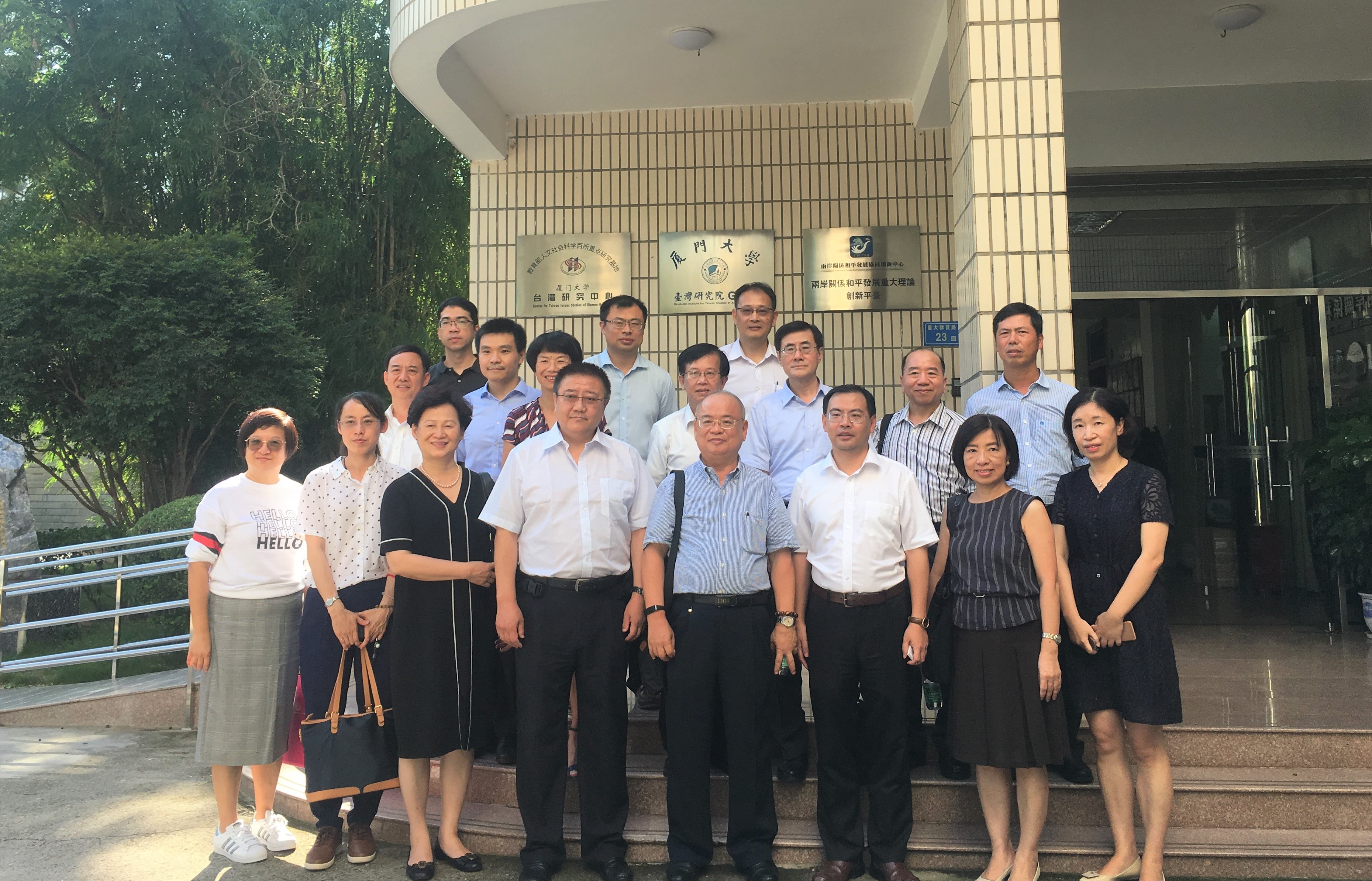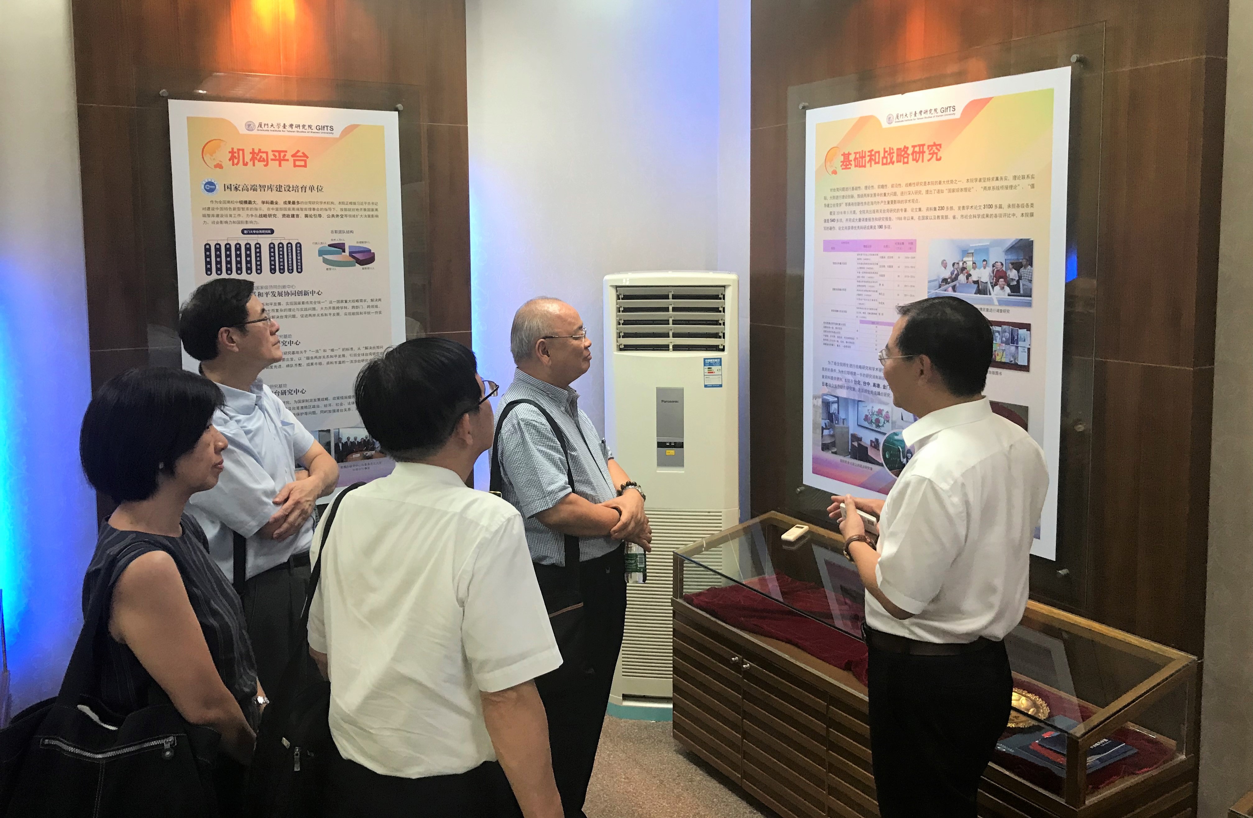 在台湾研究院一楼展厅,李鹏向台湾客人详细介绍了厦门大学台湾研究院的发展历程、机构平台、研究概况和标志性成果。随后,参访团成员与我院师生在台湾研究院正门合影留念。在我院师生陪同下,参访团成员还登上颂恩楼,俯瞰厦门大学思明校区全景。