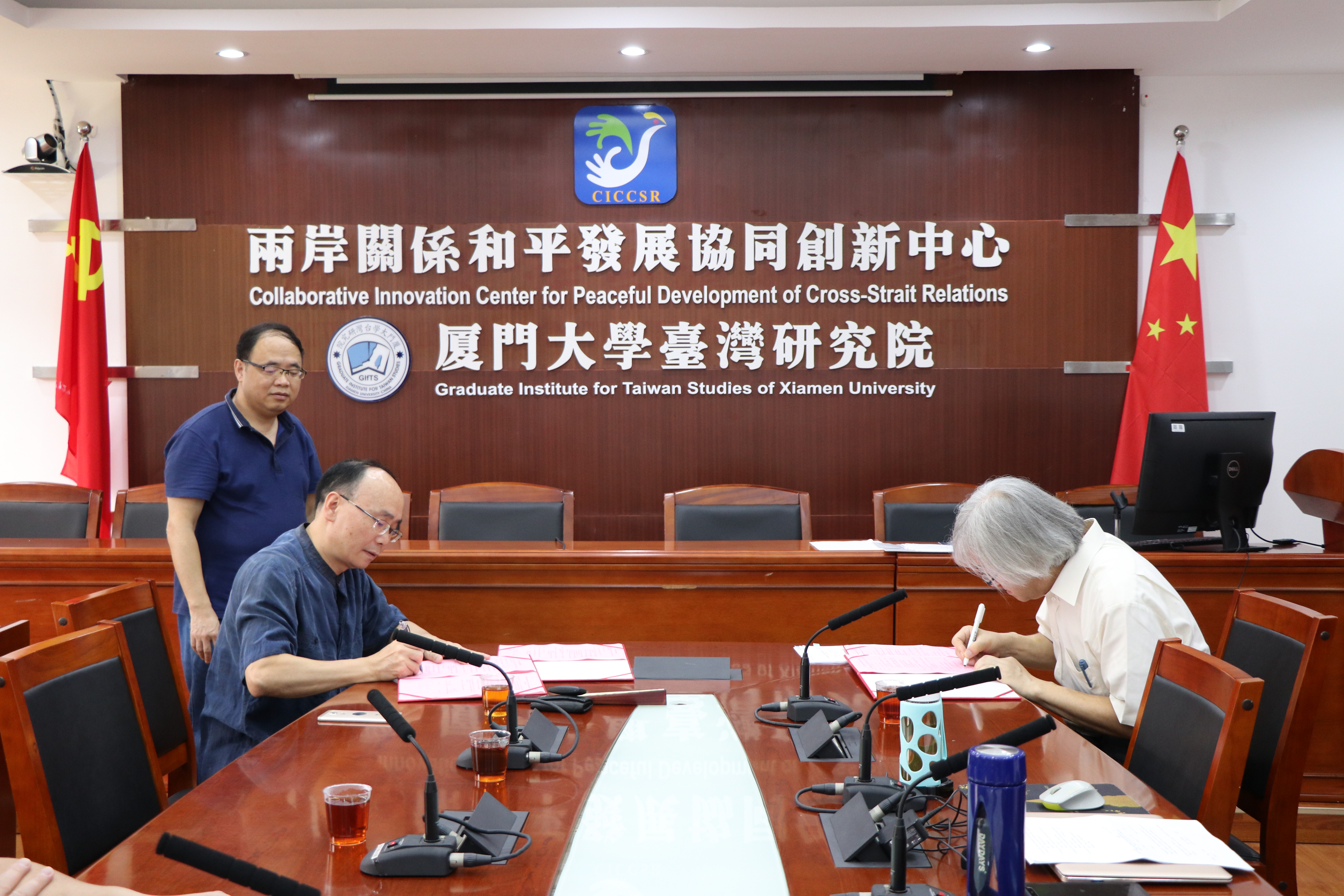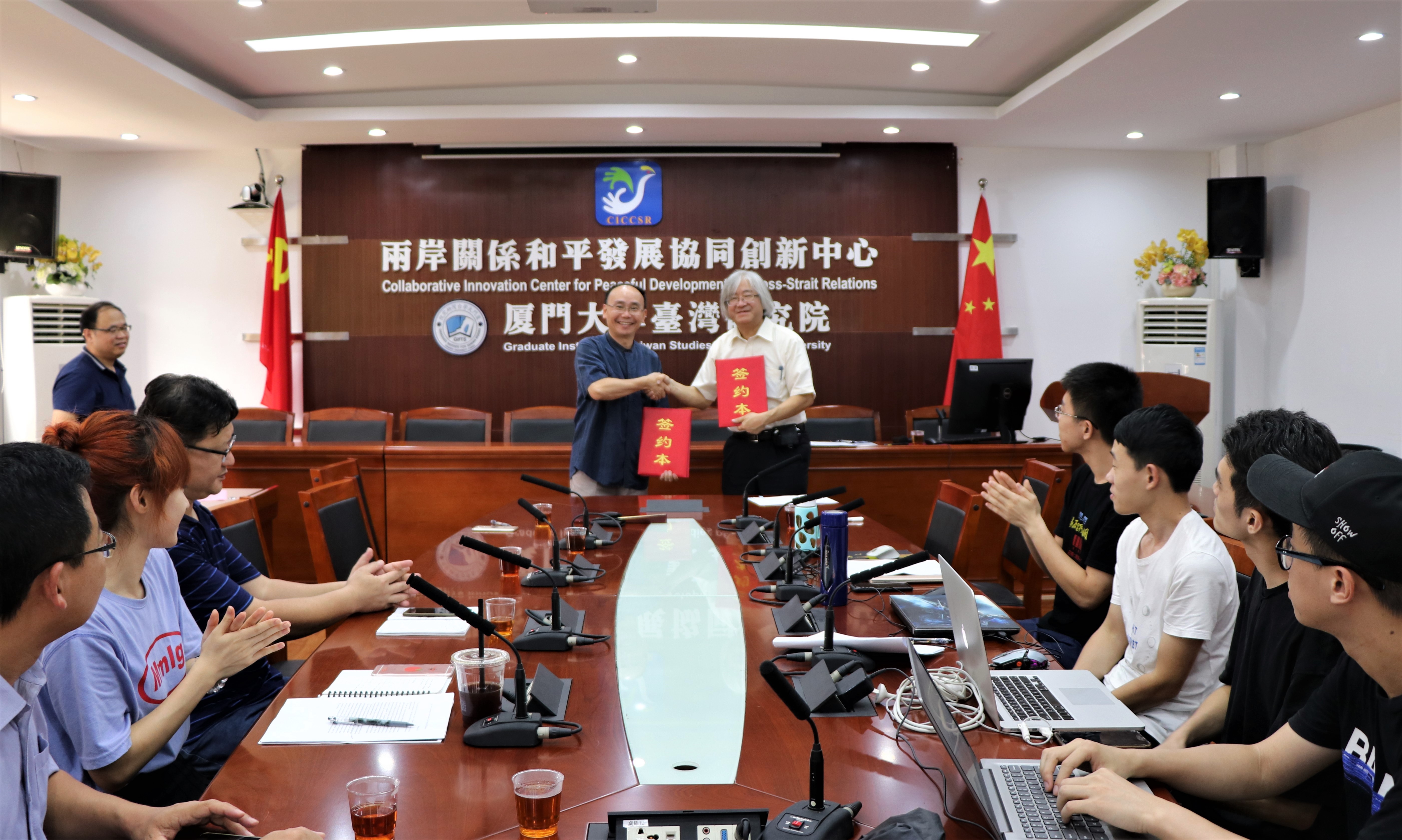 7月12日下午,厦门大学台湾研究院与日本爱知大学国际问题研究所合作协议签约仪式在我院会议室隆重举行。签约仪式由厦门大学台湾研究院副院长张文生教授主持,两岸关系和平发展协同创新中心主任刘国深教授和日本爱知大学前校长佐藤元彦教授分别代表双方签字。我院经济所所长王华教授、王勇副教授与部分经济所同学共同见证了签约仪式。