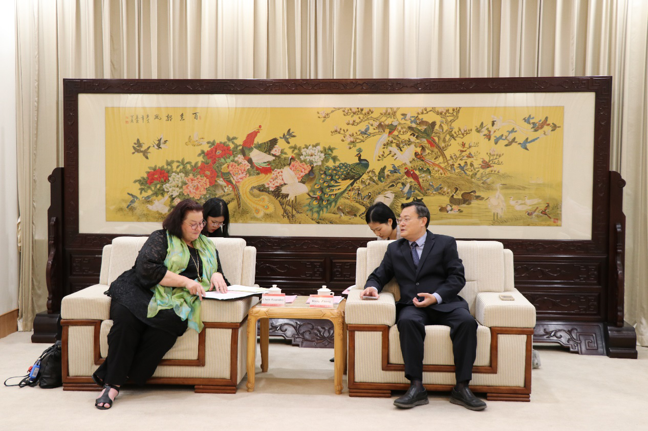 10月21日下午,新西兰驻华大使傅恩莱(Clare Fearnley)一行访问我校,校长张荣教授会见来宾。