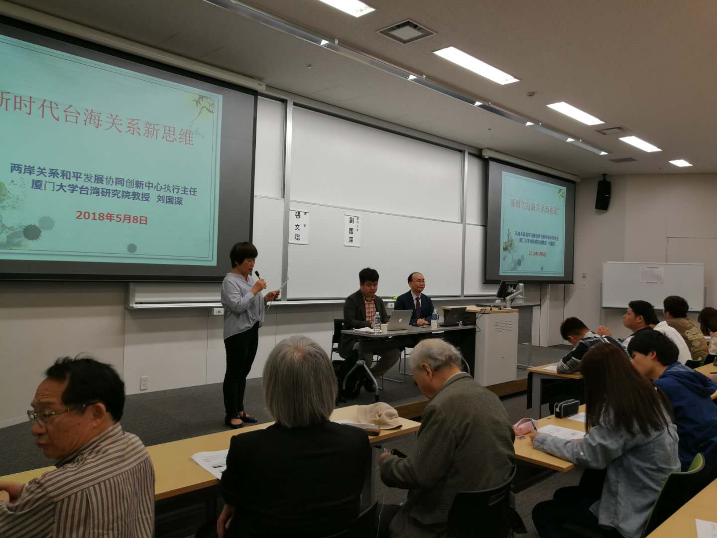 应高桥伸夫所长的邀请,5月11日,刘国深在庆应大学东亚研究所演讲,演讲主题是《中共十九大后的对台政策新动向》。刘国深重点介绍了中国政府和各地政府出台的各种惠台措施,他认为,习近平在十九大报告中提出的“逐步为台湾同胞在大陆学习、创业、就业、生活提供与大陆同胞同等的待遇,增进台湾同胞福祉”,展现了极大的耐心、包容和以民为本的精神。刘国深还回答了日本亚洲经济研究所佐藤幸人教授、东京大学松田康博教授和东京外国语大学小笠原欣幸教授等日本专家学者、学生提出的问题。