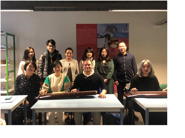 此外,两岸青年研究中心还赴巴黎第七大学孔子学院进行了参访。巴黎第七大学孔子学院由武汉大学和巴黎七大合作建立,由武汉大学派出的教师负责日常授课。两岸青年研究中心现场观摩了古琴授课,课上古琴教师将“道法自然,天地同和”的古琴文化精神娓娓道来,并配以古琴苍茫宁静之韵,蕴含着独特中华文化的古琴课吸引了法国同学前来聆听学习。