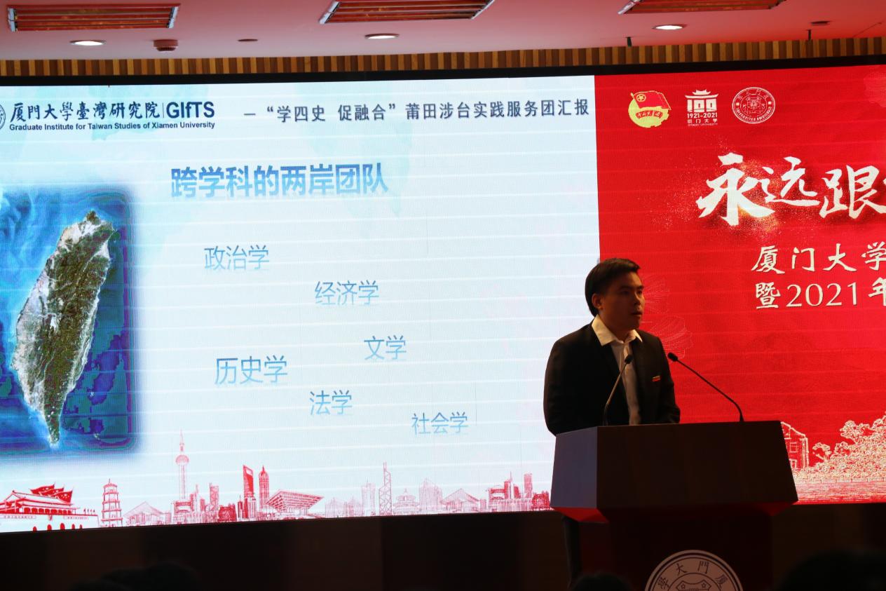 长期以来,我院始终致力于为学生学术能力与实践素养的提升提供优质机会。本次活动也是将学生培养工作与推动两岸融合紧密结合的重要实践。表彰大会中,厦门大学党委副书记徐进功对我院此次实践活动中展现的两岸参与融合、多学科交叉融合作出了高度评价。他认为这是有意义的实践活动,并勉励我院在专业带队老师的指导下,赓续优良传统,将今后的社会实践活动越办越好。