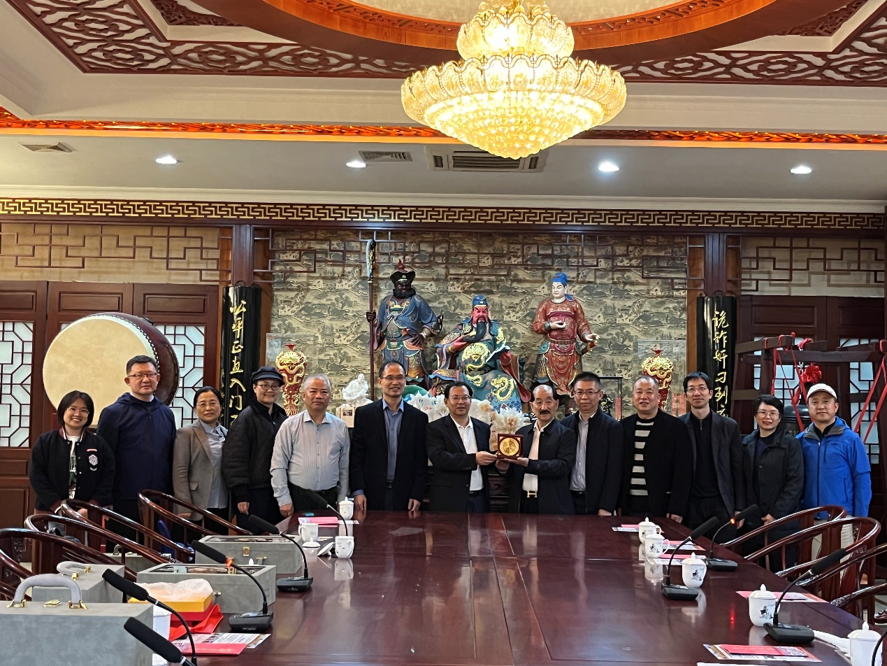 泉州通淮关岳庙历史悠久,系台港澳地区600多间关帝庙的祖庭。午后,院领导一行前往泉州通淮关岳庙走访,参观庙内建筑、匾额等文物等。随后,院领导一行与通淮关岳庙董事长陈庆元在文化馆座谈,并参观了关帝文化馆内的明代古钟及其他重要文物。双方就进一步加强在涉台民间信俗文化、两岸文化交流等领域的合作达成共识。