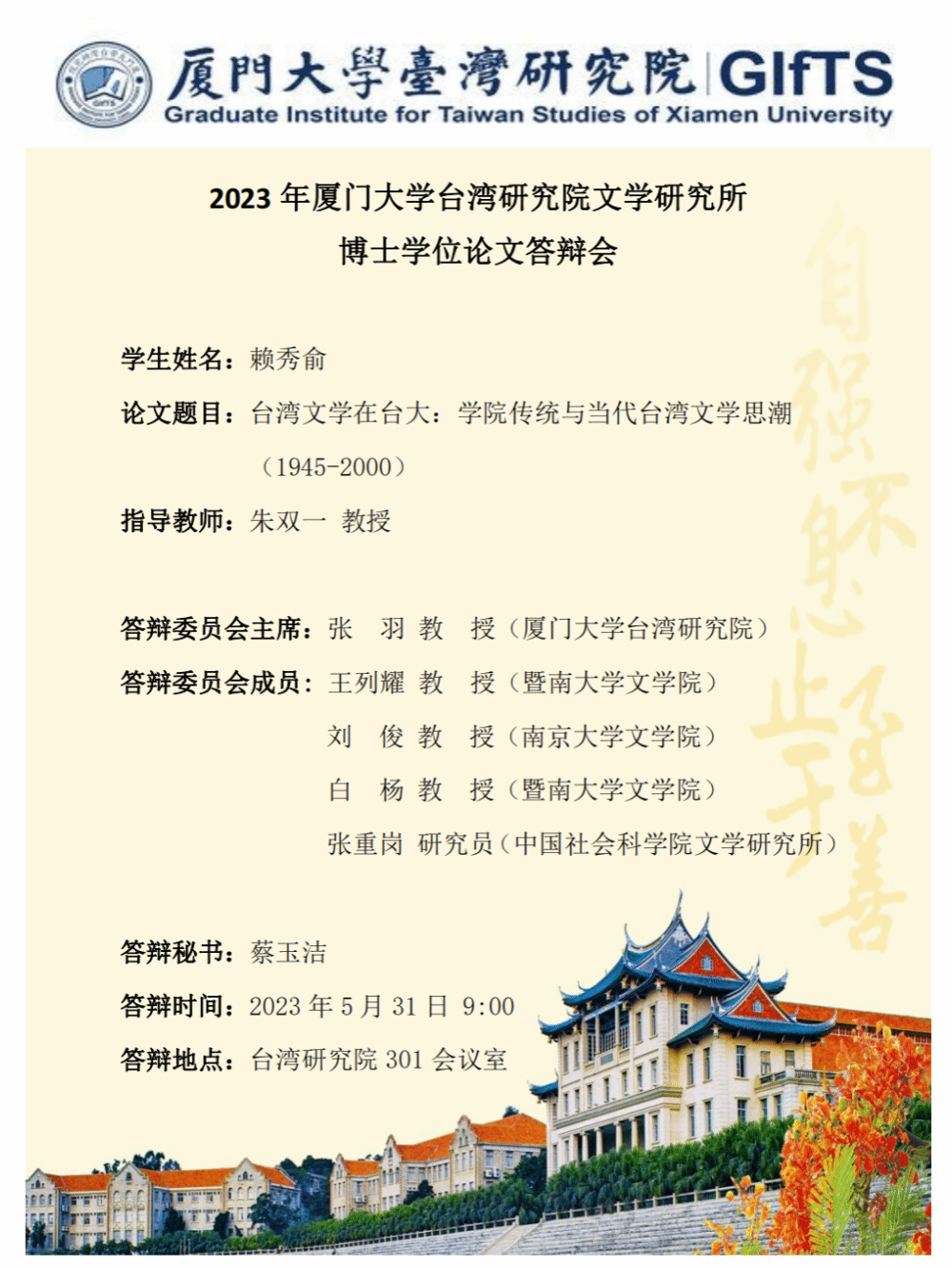 透过人文教育、知识生产、文学传播、学院建制四个维度的考察可知,台大的学院传统主要体现为三个特性:首先,它主张独立于政治之外;其次,其传承乃基于学院空间内的师生谱系;再者,它呈现出对古典传统的重视与强调。独立于政治之外、师生脉络的传承以及对传统的重视。基于此,台大知识分子藉由针对人文与政治、现代与传统、文学与现实三组关系的思考,建构了独特的知识谱系,并在当代台湾文学思潮的发展与演变进程,编织了一张具有学院派特色的意义之网。基于此,以台大为主要考察对象,探讨学院体制介入知识生产、文学实践与文化传播的过程,不仅能够为我们进一步挖掘当代台湾文学思潮的多元性提供另一种有价值的新思路,革新我们对当代台湾文学思潮在“内战-冷战”历史脉络中发展与演化的认识;与此同时,对台大与当代台湾文学思潮之内在关联的考察,呈现了台大学院传统形成背后的独特历史脉络与发展线索,以及师生谱系在台大学院传统形成过程中的关键位置,并在此基础上揭示了台大学院传统在当代台湾文学思潮中投射的学院特性。