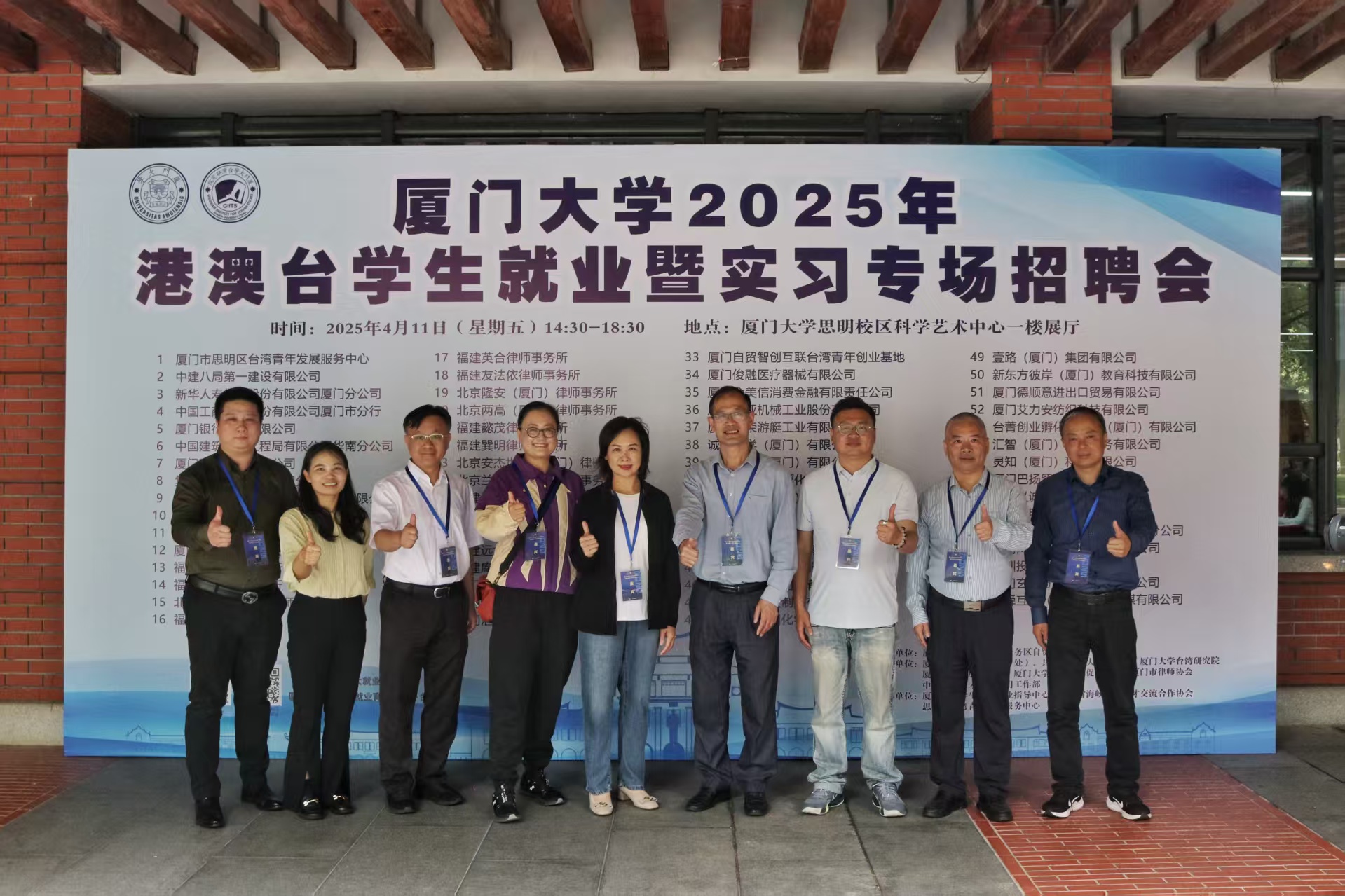 本次活动由厦门大学、海丝中央法务区自贸先行区主办,厦门大学学生工作部(处)、共青团厦门大学委员会、厦门大学台湾研究院、厦门市人才服务中心、厦门大学中华文化促进学社、厦门市律师协会、中国海峡人才市场厦门工作部承办,厦门大学学生就业创业指导中心、福建省海峡两岸人才交流合作协会、思明区台湾青年发展服务中心协办。