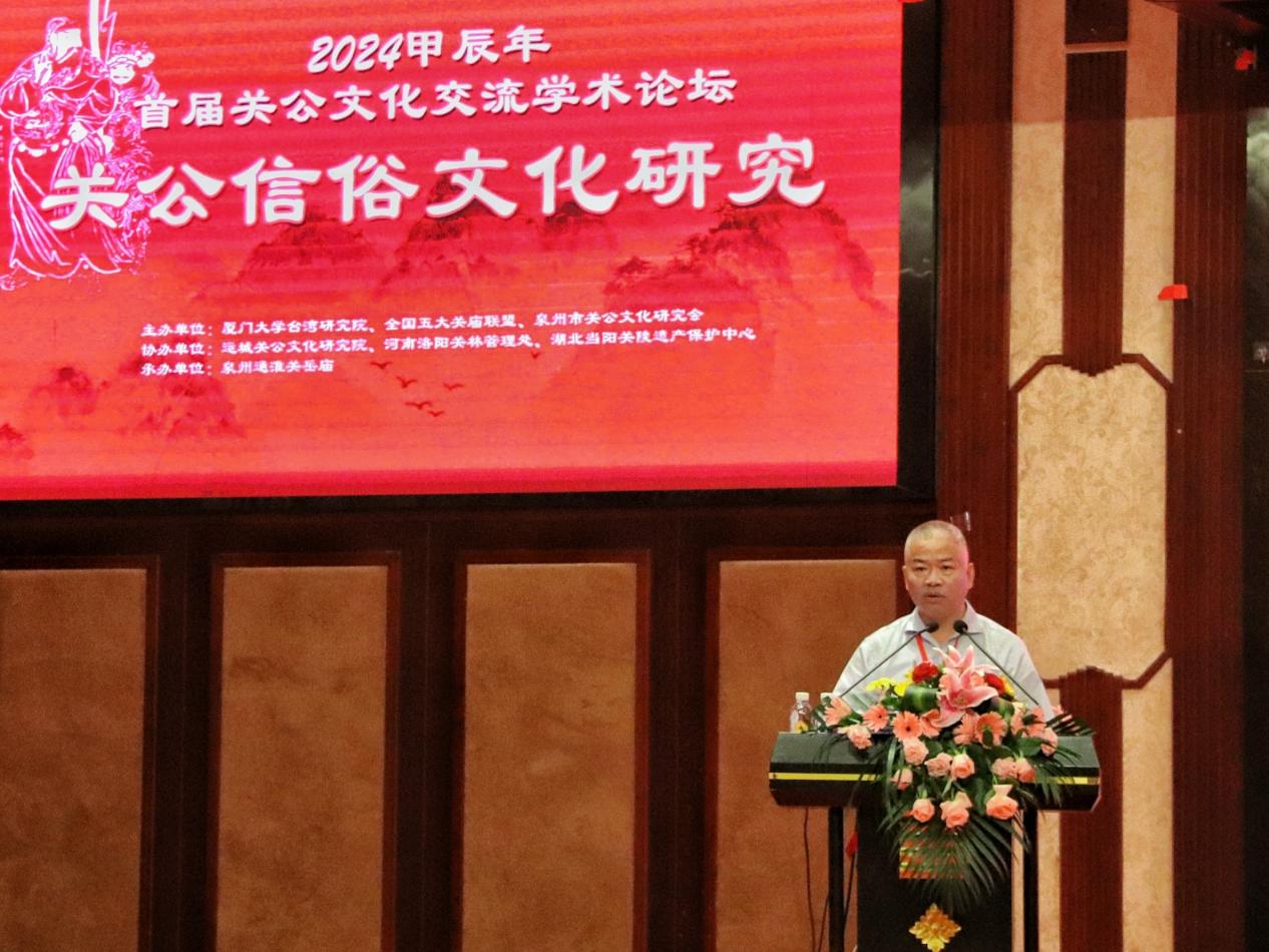 论坛开幕式由厦门大学台湾研究院党委副书记陈文主持,台湾研究院院长李鹏教授发表致辞。李鹏院长指出,“关公文化是中华优秀传统文化的重要组成部分,千百年来一直跨越时空,影响深远。闽南关公文化既坚守了传统文化的内核,又融入了闽南地方特色,具有深厚的文化底蕴”。李院长相信,以首届“关公文化交流学术论坛”为起点,深入挖掘和研究关公信俗文化,必将对促进两岸交流交往、实现两岸融合发展以及铸牢中华民族共同体意识等方面产生积极作用。