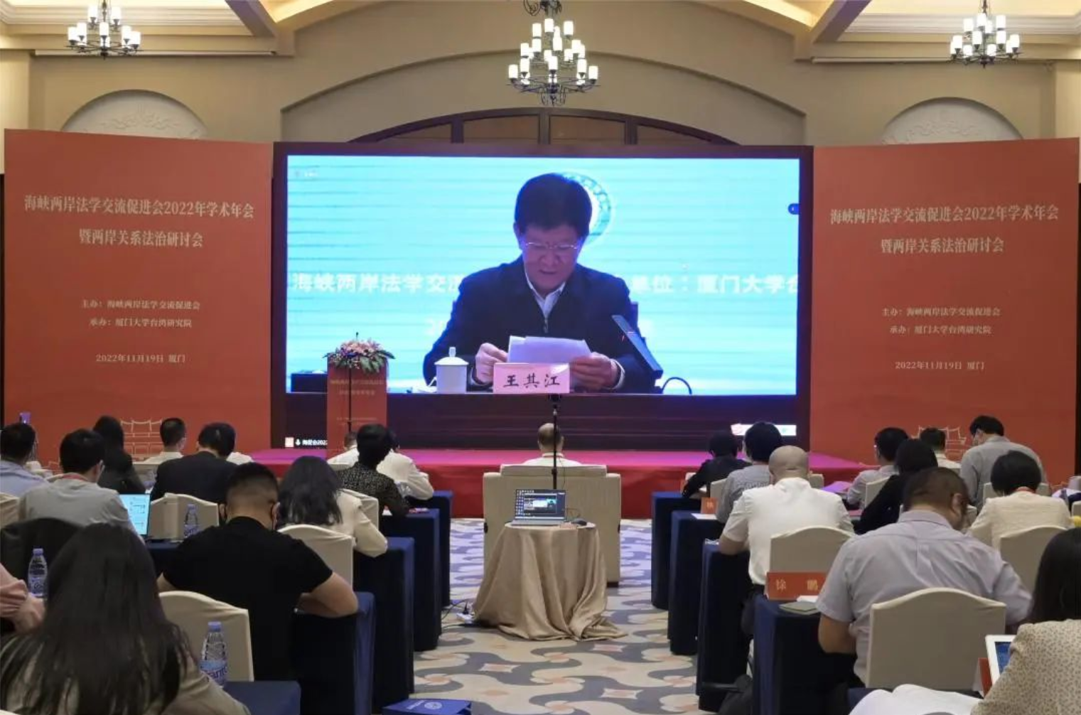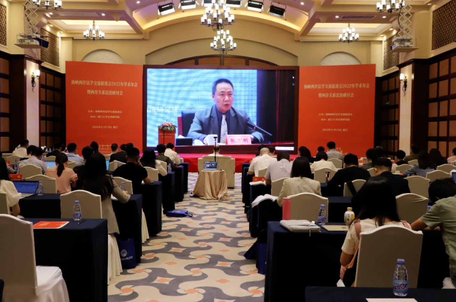 2022年11月19日,由海峡两岸法学交流促进会(简称“海促会”)主办,厦门大学台湾研究院承办的海促会2022年学术年会暨两岸关系法治研讨会在北京和厦门两个分会场同时开幕。来自各地的190余位涉台法律专家学者和法律实务界人士出席会议并参加研讨。