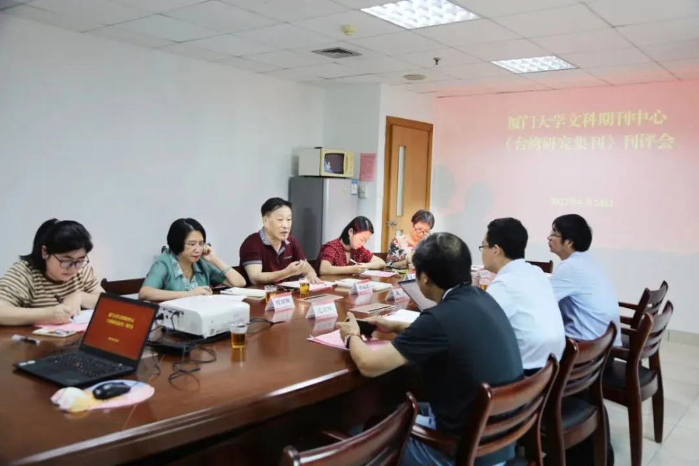 6月24日,厦门大学文科期刊中心召开《台湾研究集刊》刊评会,特邀福建师范大学闽台区域研究中心、两岸协创中心福建师范大学文化研究中心教授、《海交史研究》主编、《台湾研究集刊》编委谢必震对文科期刊中心刊物进行指导。会议由社科处副处长夏路主持。党委党校副校长、厦门大学学报(哲社版)编辑部主任何丽新,《南洋问题研究》社长、《南洋资料译丛》主编范宏伟,《台湾研究集刊》主编王华,《中国经济问题》常务副主编张兴祥,《台湾研究集刊》编辑部主任陈勤奋,《南洋问题研究》助理编辑许丽丽等参加了刊评会。