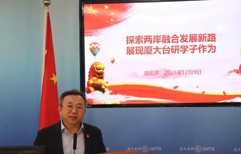 曾云声书记在讲解党的十九届六中全会精神和福建省第十一次党代会精神基础上,聚焦会议精神中的涉台指示与相关论述,对本院学子进行思想启迪与行动动员。