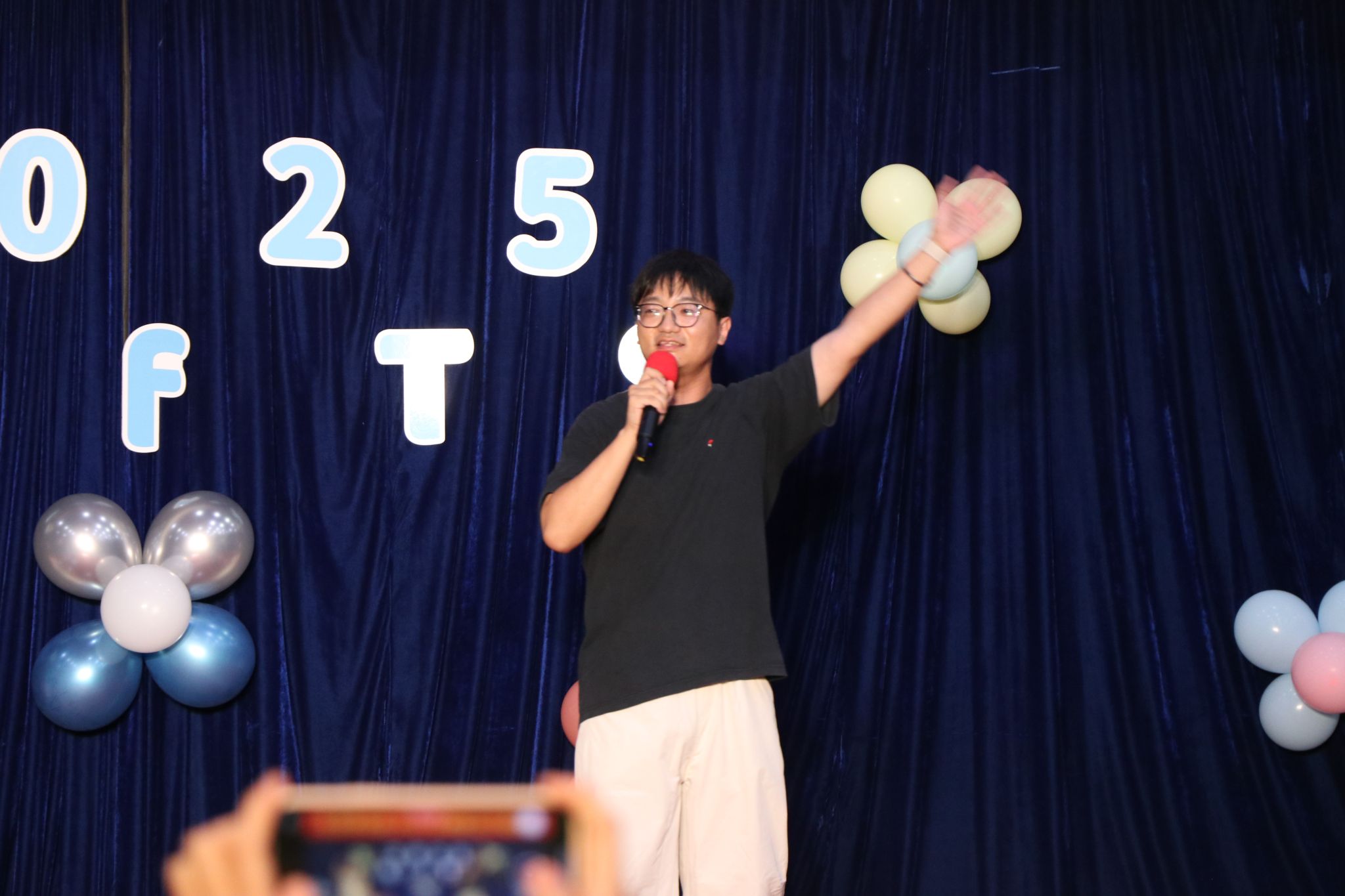 游戏后,晚会的第二篇章——“逐光前行,云程再谱新篇”在倪浚普同学带来的独舞《偶像》中拉开帷幕,他以充满力量与表现力的“打艺”舞姿,带领观众走进虚拟与现实交汇的青春世界,现场气氛迅速升温。庄泓睿与陈彩祺合奏并演唱的《星辰大海》,温柔的旋律与坚定的歌词唤起在场同学对梦想与远方的向往。随后,陈梦彤同学带来的独唱 《Make You Feel My Love》将现场氛围转入内敛与深情。她用细腻动人的嗓音演绎真挚情感,引发听众心灵共鸣。紧接着,陈莫与林宥辰合作的双人舞《Moonlight》,两位同学舞姿灵动优雅,展示彼此的默契。接下来,段柏旭同学为大家带来歌曲《月半弯》,他以温柔的声线勾勒出朦胧月色中的柔情岁月,营造出一段静谧浪漫的时光。最后,来自艺术学院的特邀嘉宾们用乐器合奏《Golden Hour》,他们将温情与力量交融,以充满诗意的旋律致敬初见与离别的金色记忆,令大家沉浸在温暖与感动之中。