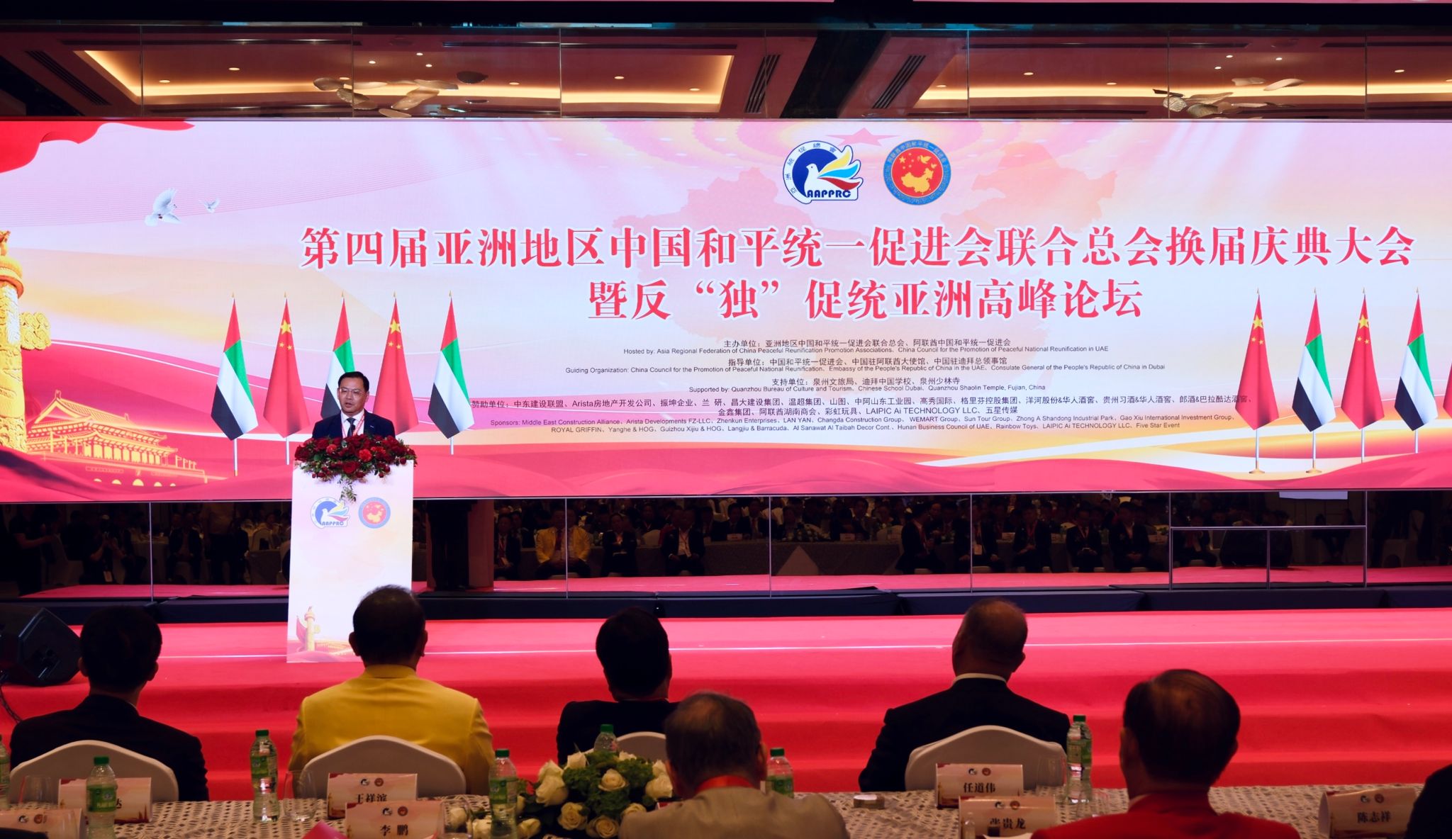 5月25日,第四届亚洲地区中国和平统一促进会联合总会换届典礼暨反“独”促统亚洲高峰论坛,以及第二届中东华人华侨促进中国和平统一论坛在阿联酋迪拜举行。来自亚洲、非洲等近50个国家和地区的统促会负责人、侨胞代表和各界友好人士等300余人参会。我院院长李鹏教授受邀出席论坛并作主旨发言,分享对当前反“独”促统的看法。