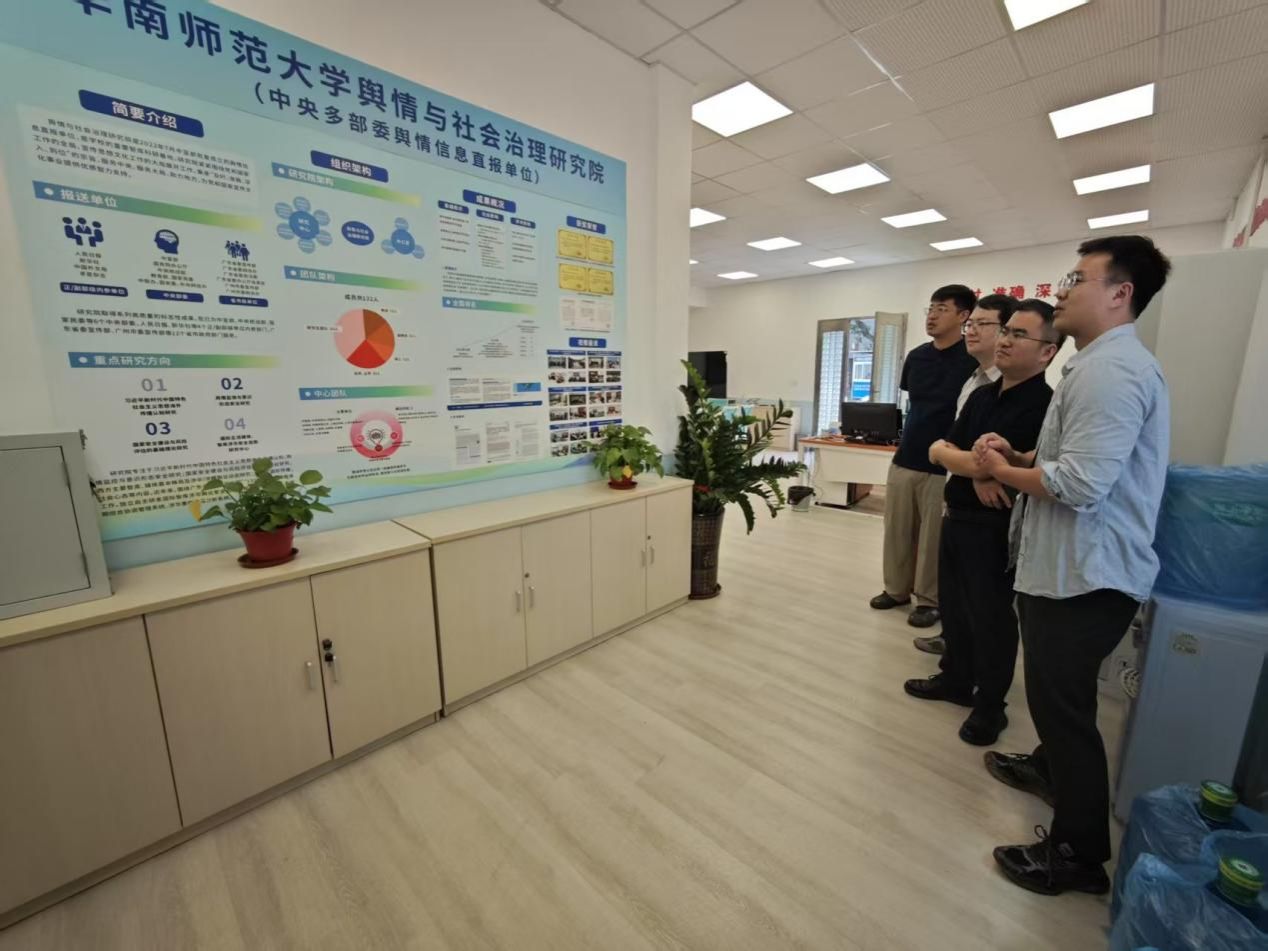 26日上午,王贞威所长一行赴华南师范大学舆情与社会治理研究院调研,与常务副院长李龙教授、马路遥助理研究员和张哲恺助理研究员等人展开交流。双方就高端智库建设、境外涉华舆情新态势、舆情监测系统建设、智库报告撰写报送等议题进行了深入的交流,座谈气氛热烈融洽。王程助理教授一同参加座谈。