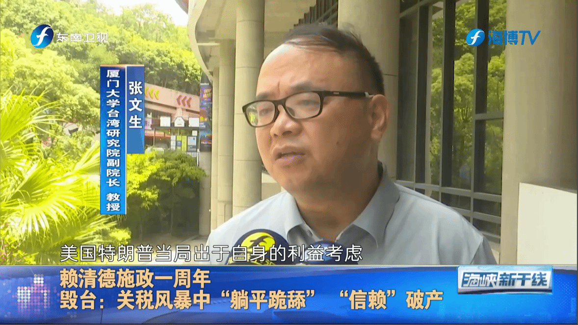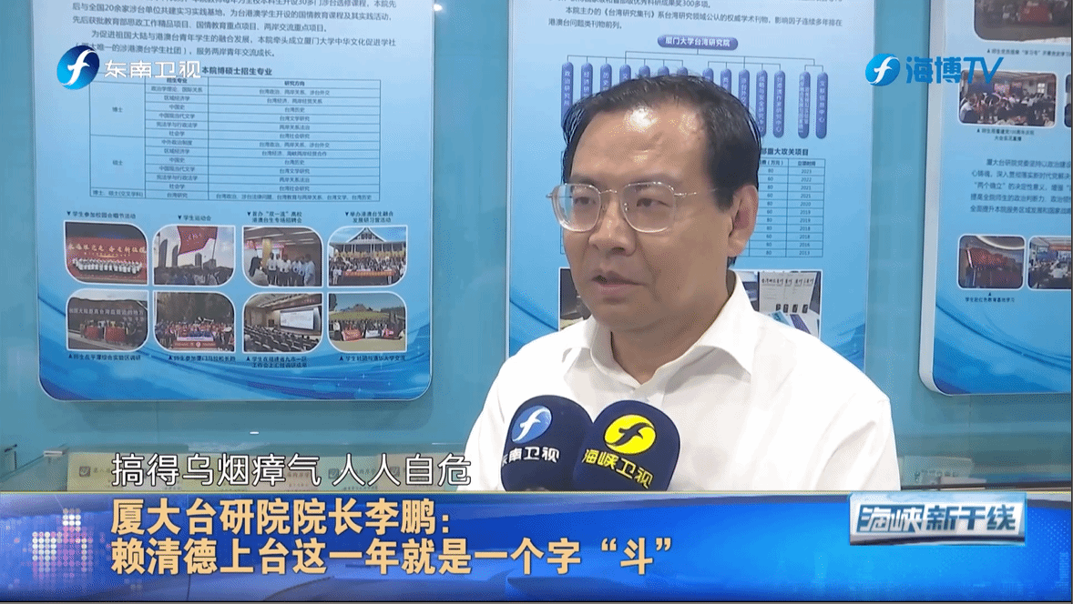 赖清德上台施政一年来,台湾政治生态愈发混乱不堪,其施政方向偏离正轨,将大量精力投入到内斗政敌之中,严重破坏台湾的稳定与发展。岛内舆论评价其为“战斗鸡”,台湾政坛一片肃杀。近日,我院李鹏教授、张文生教授和唐桦副教授接受东南卫视《海峡新干线》节目采访,就赖清德施政一周年的“毁台”行为发表看法,深入剖析其行径背后的本质与危害。