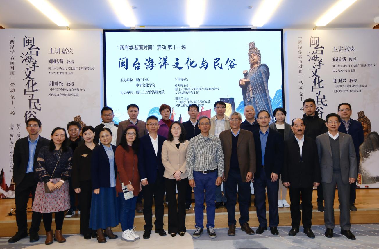 2024年1月4日,第十一场“两岸学者面对面”系列学术活动在厦门大学科学艺术中心举办,主题为“闽台海洋文化与民俗”。本场活动由厦门大学和中华文化学院共同主办,厦门大学台湾研究院承办,特别邀请了厦门大学人文与艺术学部主任、历史与文化遗产学院特聘教授郑振满和“中研院”台湾史研究所研究员、近代史研究所合聘研究员谢国兴展开对谈。