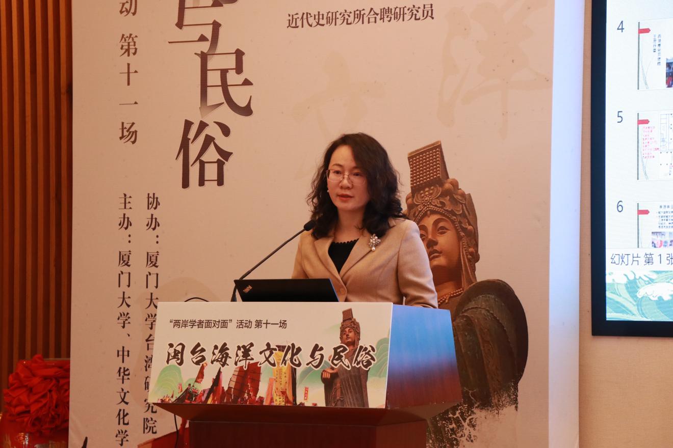 中华文化学院科研部处长刘凤英则在致辞中指出,闽台一水之隔,两地同根同源、同文同种,中华文化是维系两岸同胞的共同精神纽带,闽台文明是密切联结两岸人民情感的价值纽带,通过两岸学者为我们呈现有广度、有深度的学术盛宴,对继承和发展闽台海洋文化、增进两岸人民文化认同,促进两岸融合发展、和平发展将产生积极作用。
