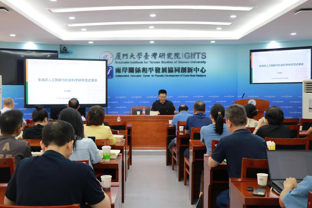 10月19日中午,第3期“台研智荟”午餐交流会在台湾研究院507报告厅顺利举行。本场午餐会特别邀请了厦门大学公共事务学院院长、闽江特聘教授于文轩作题为“生成式人工智能与社会科学研究范式的革命”的专题讲座报告。